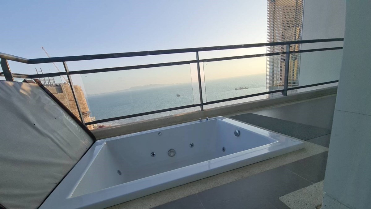 Reflection Luxury beachfront condo for sale or rent in Jomtien Pattay. This property is very spacious large unit size 120 sq.m., comes with beautiful panoramic ocean views across Jomtien bay, high quality fully furnished and appliances, European kitchen, Bathtub.