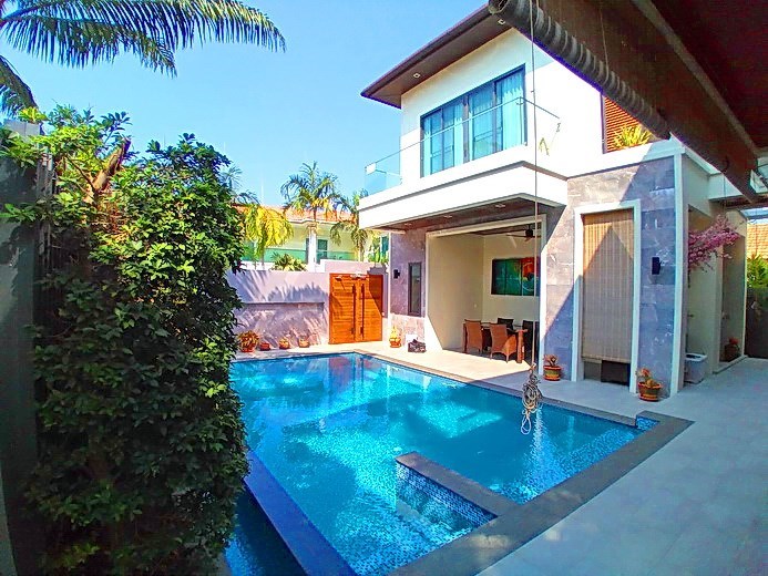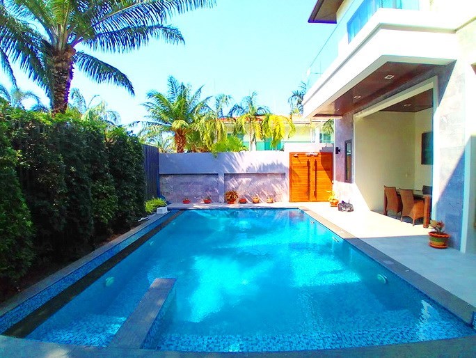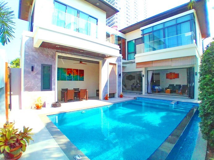 Modern-style 5-bedroom pool villa for sale in an exclusive gated development on Pratumnak Hill close to cozy Beach.