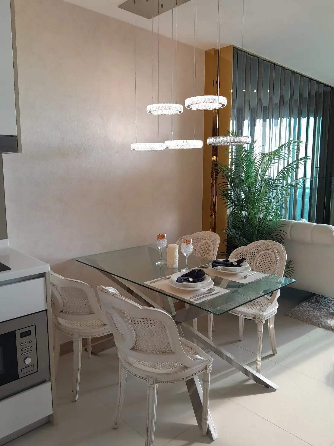 • Features: Fully furnished with modern decor, Built-in/European Kitchen equipped with essential appliances (Washing Machine, Refrigerator, Microwave)