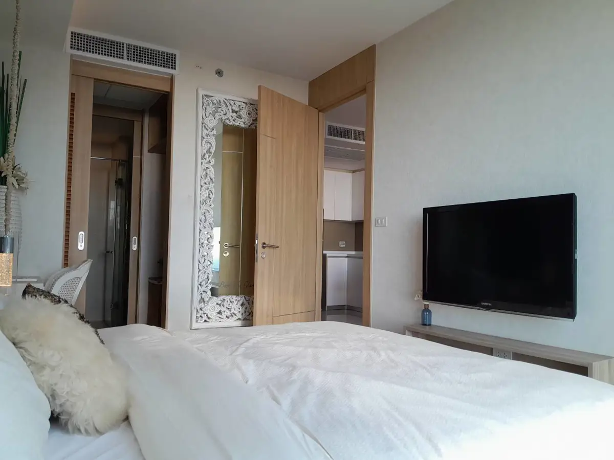 Experience the pinnacle of contemporary living with this beautiful 1-bedroom, 1-bathroom condominium available for rent in Jomtien, Pattaya. Featuring a generous size of 47.38 square meters, this expansive unit situated on the 17th floor offers breathtaking sea views, creating an ambiance of tranquility.