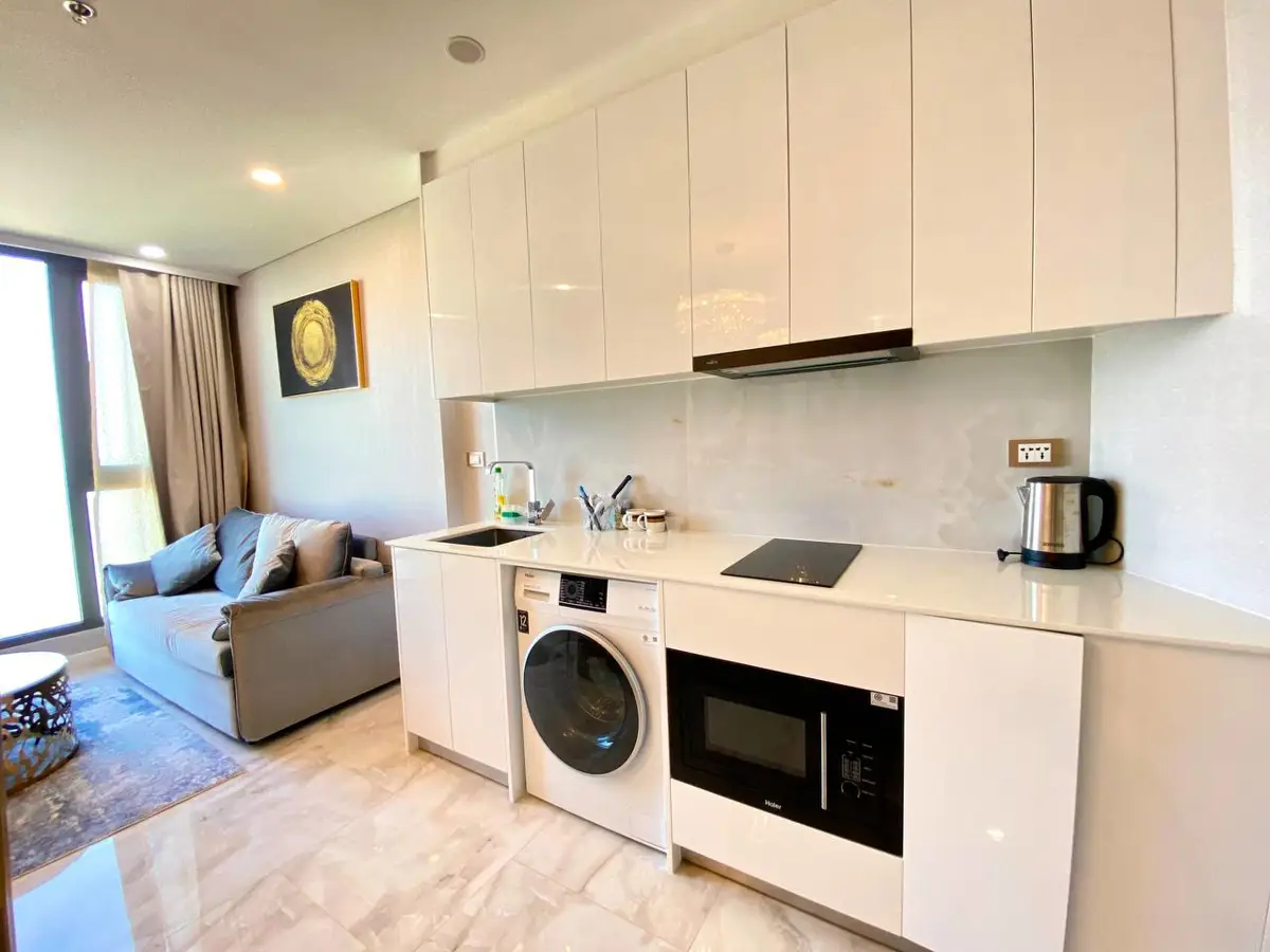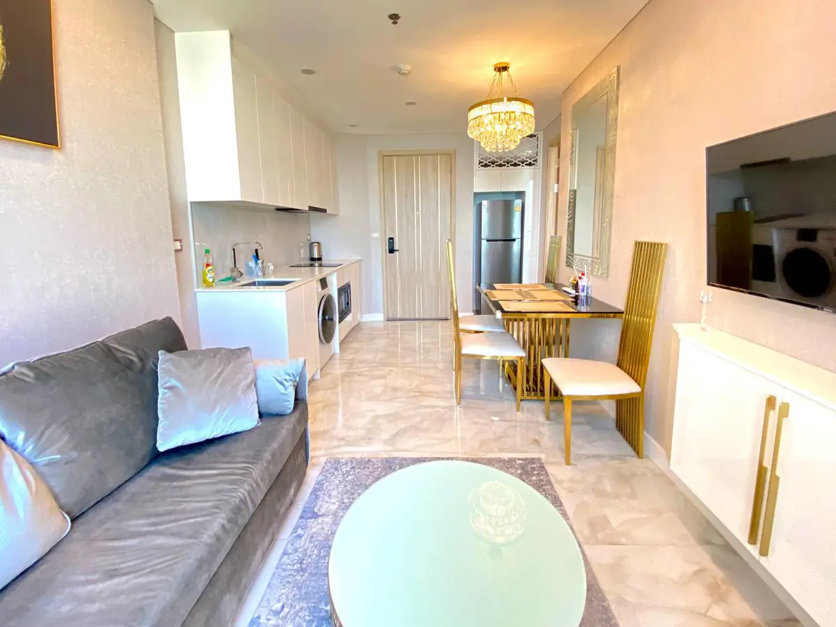 Introducing a stunning 1-bedroom condo located in the newly built Copacabana Beach Jomtien residential complex in the vibrant city of Pattaya, specifically in the Jomtien district. This modern flat, situated on the 45th floor of a 59-story building, offers breathtaking views and luxurious living. With a spacious area of 46 m², this fully furnished condo is perfect for those seeking comfort and style. And this unit have Jacuzzi.