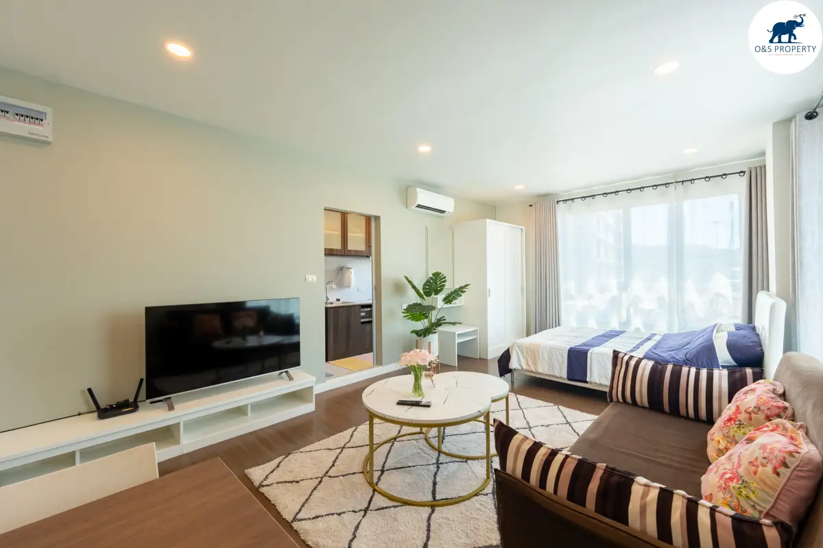 This newly cosy renovated condo is fully furnished and located in central Phuket Kathu, close to Patong, Central Festival Phuket, Tesco Lotus a nearby 7eleven and has a wonderful 100-meter swimming pool, gym, lobby, Car and motorbike parking and 24hrs. security, cctv.