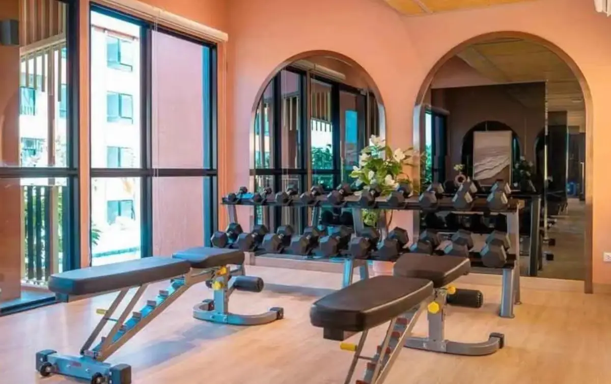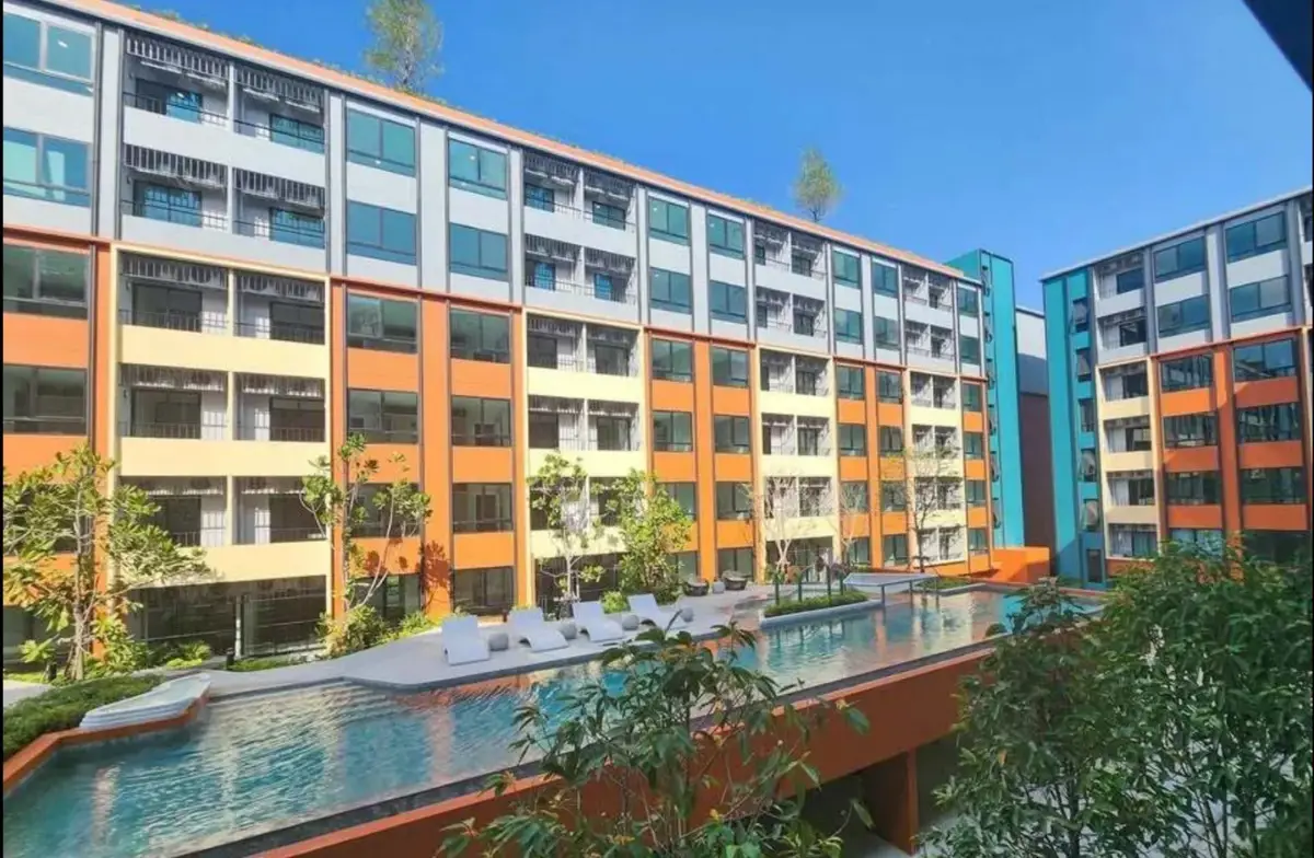 The condo features an open-plan living area with full furnishings, including a cozy bedroom, modern bathroom, compact kitchen, and private balcony overlooking beautiful mountain views. Residents have access to excellent facilities such as a common swimming pool, fitness center, and secure parking.