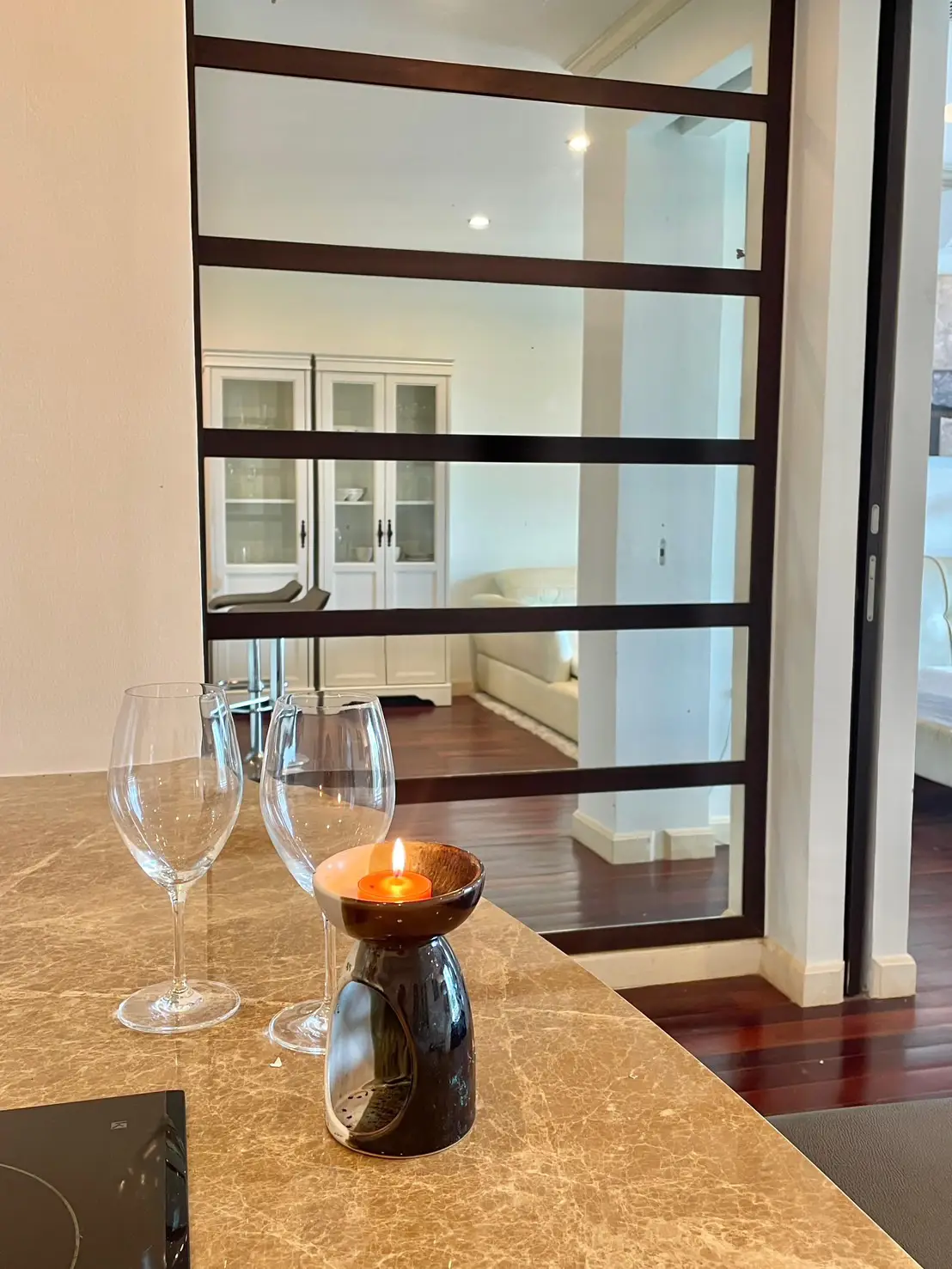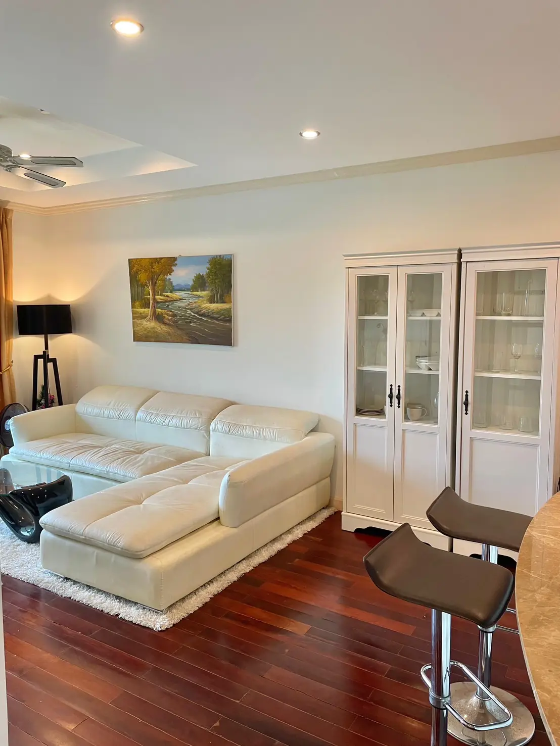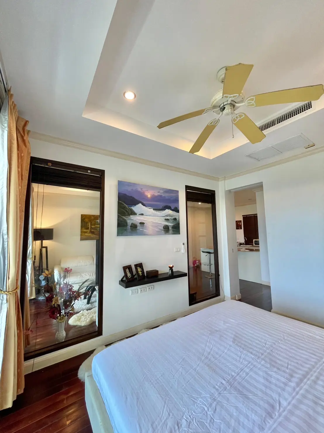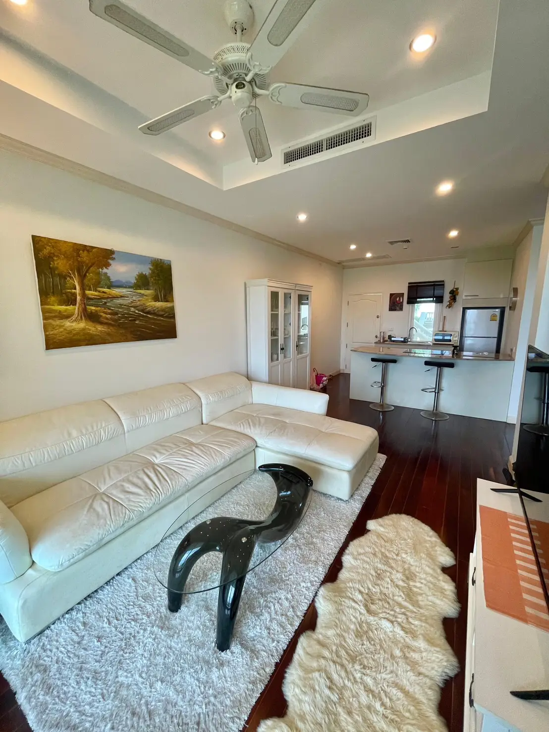 The condo comes fully furnished with marble countertops and hardwood flooring for a touch of luxury. Located just 900 meters from Phuket Smart Bus on Patak Road, it offers both tranquility and convenience.