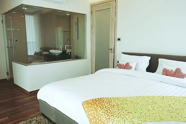 This stunning condo that offers breathtaking ocean views and sophisticated interiors. Wake up to serene sunrises from the comfort bedroom, featuring a glass-enclosed bathroom with bathtub. The open-plan living area and dining areas are perfectly designed, with stylish wood floors and contemporary accents adding warmth and elegance. Step onto the private balcony and take in the sweeping sea view