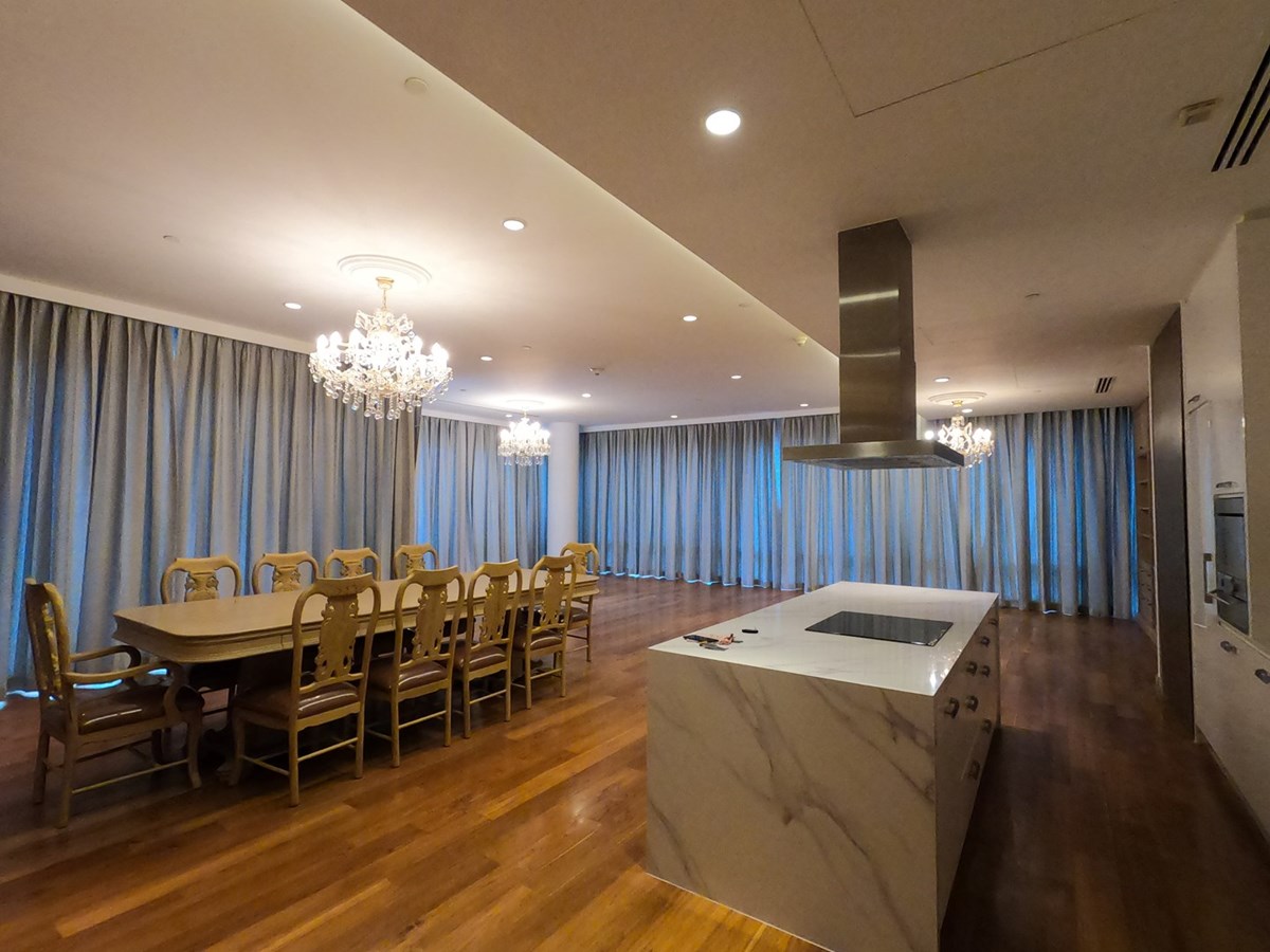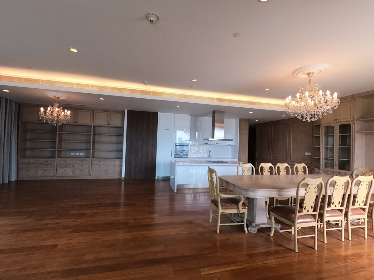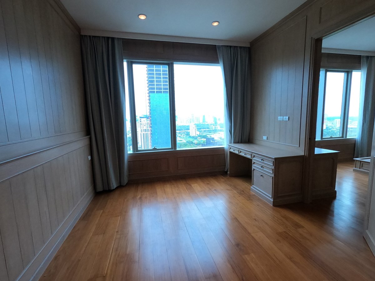This is a 4 bedroom, 4 bathroom, corner unit property on the 29th floor of the luxury condominium by Raimon Land, 185 Rajadamri. The 300 sqm property faces South and West with views of The Royal Bangkok Sports Club and 185 Rajadamri is well positioned with access to Lumpini Park, the BTS and Ratchaprasong and Siam shopping areas.