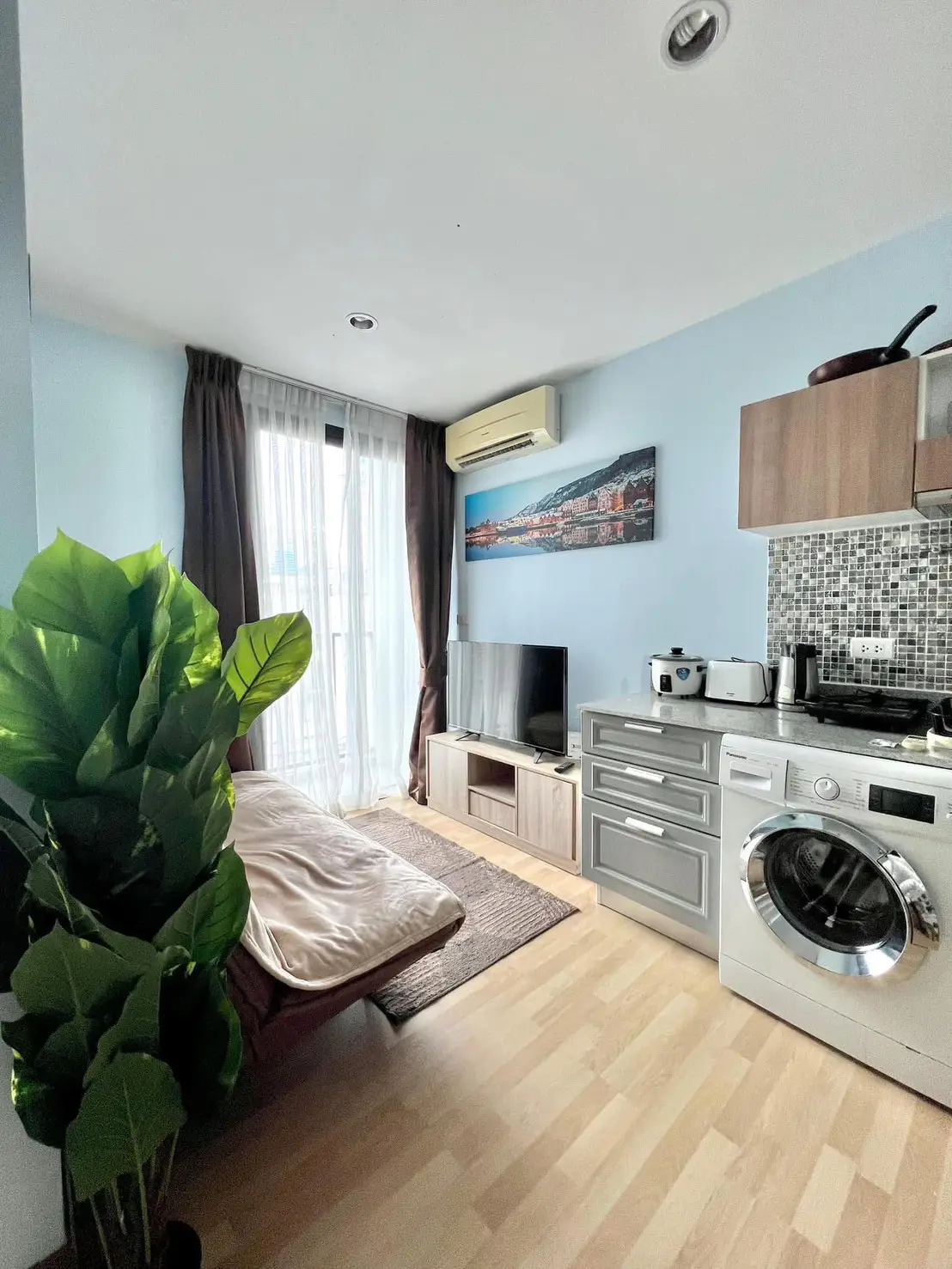 Zcape X2 is a stylish vacation condominium offering various types of rooms with lake and pool views. The rooms are fully furnished, and the project has selected good material brands to decorate the kitchen, living room, bedroom, and bathroom by using white and brown color tones. These bright color tones are perfectly integrated with nature and increase the brightness of windows and big glass doors. Moreover, it helps the rooms not humidity, get well-ventilated, and save energy during the day. The residents will also be enjoyable with various facilities provided and meet the residents' needs, including a community with a jacuzzi, a fitness room with fully equipped exercise equipment. In addition, the project is close to many main routes and easily accessible. It is also convenient to go everywhere nearby, such as Villa Market, Boat Avenue, Top Market, Phuket Laguna, Surin Beach, and Bang Tao Beach.