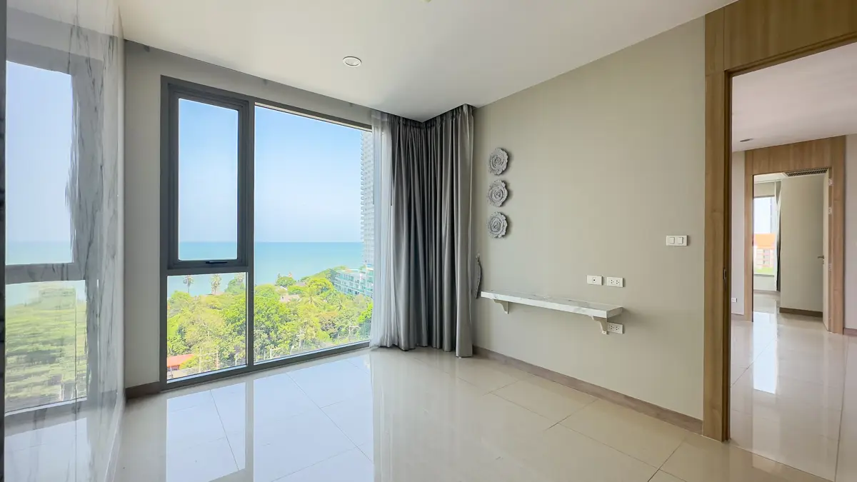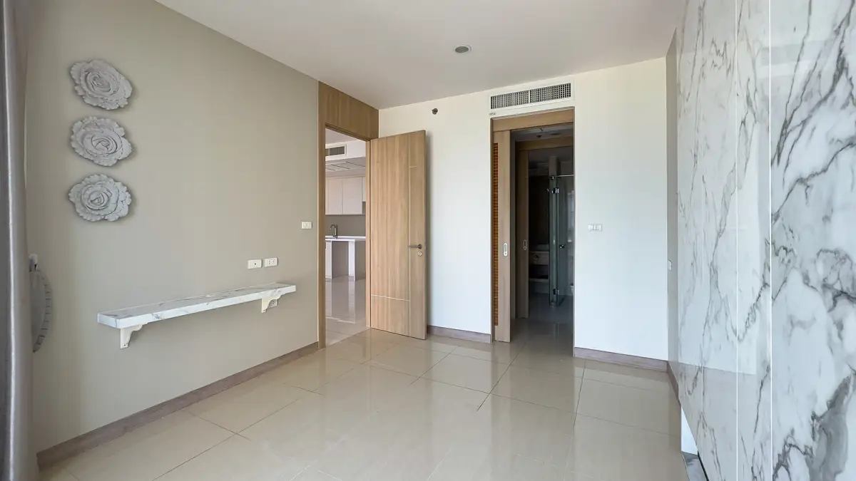 Indulge in the epitome of modern living with this beautiful 2-bedroom, 2-bathroom condominium for sale in Wongamat, Pattaya. With a spacious size of 85 square meters, this unit, located on the 9th floor, offers stunning sea views and comes fully furnished with a European kitchen equipped with high-quality electrical appliances. Only 300 meters from Wongamat Beach.