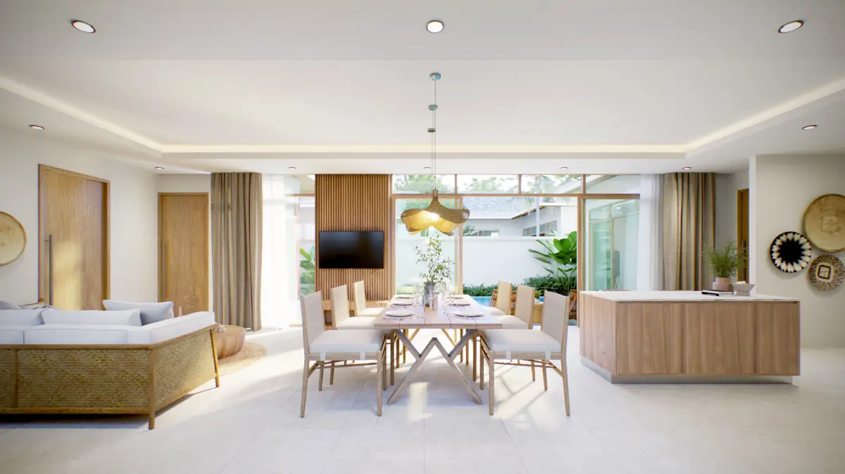 The SONYA A villa is a single-storey home within the Phuvista 3 Naiyang development, offering a peaceful tropical lifestyle just minutes from Naiyang Beach. With 2 bedrooms and 3 bathrooms, this modern Balinese-style villa is thoughtfully designed with an open-plan living, dining, and kitchen space that opens directly onto a 3 x 7-meter saltwater pool and private sun deck.