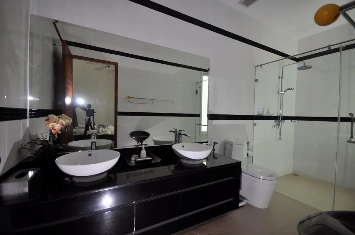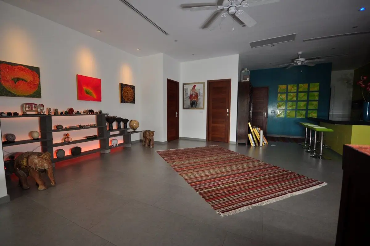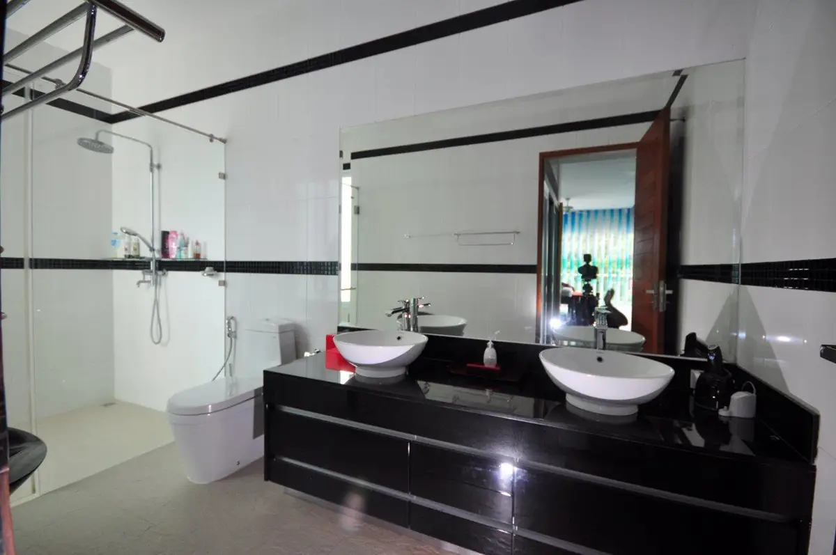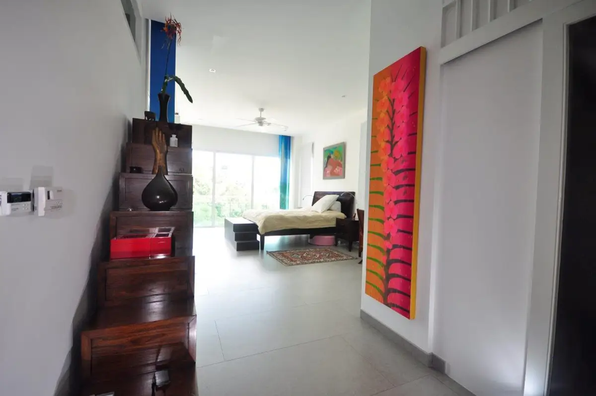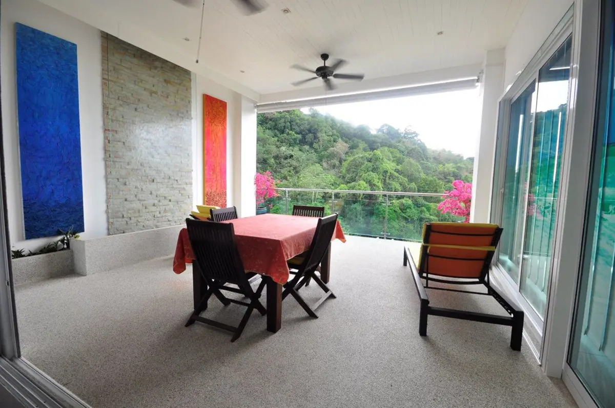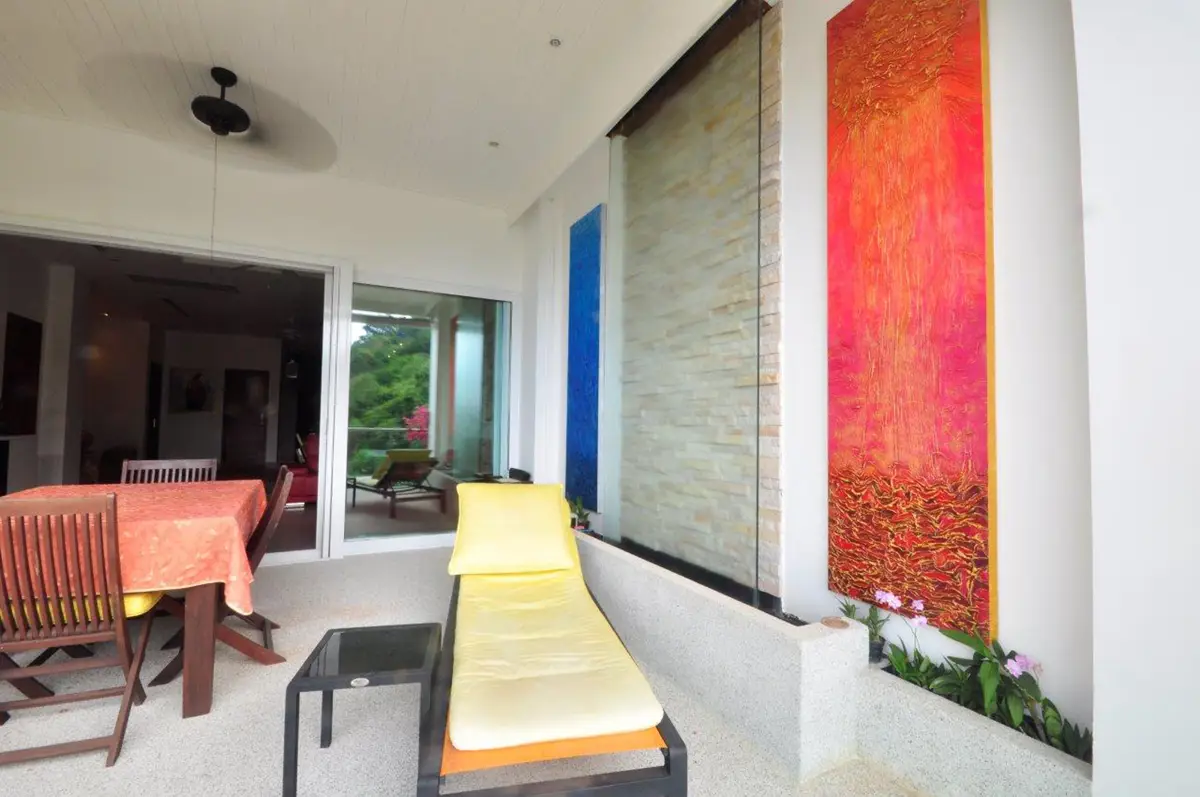 • Air-conditioners (inclusive of bathroom air conditioners. All air-cons are professionally maintained and cleaned every four months. • Balcony (wholly covered and rain protected) with two fans, seven dimmable spot lights, power sockets at 3 locations, and a water tap. Wired and wireless internet access. • Awnings on the master bedroom and balcony • 3 Bathrooms (one is a day/guest bathroom) • 2 Bedrooms with bathrooms en-suite • Built-in wardrobe in the master bedroom, plus built-in wall-cabinet • Living/Dining Room with three fans • All rooms with noon slippery quality floor tiles (not ordinary, glossy cheap tiles as usually used in Phuket) • All rooms and balconies are equipped with fans. • Solid, excellent window quality double glassed, with three locks, Soundproofing up to 42 dB (noise protection class 4) ; Uf-value of 0.95 W/m2 K • All electrical sockets are universal sockets to fit all plugs(no need for adapters) • Built-in bookshelves in bedroomsBuilt-in cabinets in bathrooms • Bedroom windows equipped with mosquito nets • Balcony with a wall fountain and LED illumination • All metal structures (rails, etc.) are treated with a clear Nano lacquer, a clear and transparent coating without any pigmentation. It has a remarkable long-lasting gloss finish, weather resistance, excellent mechanical properties (it is resistant against "knocks and bumps" and also against mechanical friction), and is stable against the effects of ultraviolet rays. • All windows are treated with nano-protection glass coatings to protect them from repellent to self-cleaning surfaces. Easy to clean - reduce maintenance on glass and avoid corrosion on glass surfaces • All floors are protected with Nano Molecule Stone Coating • Stainless Steel Deodorization Odorless Floor Drain Cover in all wet rooms • Pantry (spacious walk-in pantry directly accessible from the kitchen) • Two independent internet access points (1 high-speed fiber optic & 1 ordinary copper cable) are connected to a wired Ethernet and a wireless network (you get a wired and wireless system). With that configuration, you have a backup in case 1 of the internet connections fails, which unfortunately can happen in Phuket (only connections supplied, routers, and other IT equipment are omitted). • All rooms are equipped with 1 Ethernet Internet socket and wired with Ethernet category six cables. • Artworks from well-known and awarded artist Christiane Wyler on several walls in several rooms can be purchased at a significantly specially discounted price. Laundry Room with separate sink High quality, special lock KABA EF680 at main door with electronic key and RFID card NESS wired alarm system with radio control and pet-sensitive motion sensors (pets up to 15kg can be kept in the armed house without triggering any alarm) -> You receive a phone call in case of emergence or alarm or can divert that mobile alarm to an intervention security company) • Electrolux Washing Machine • Electrolux Dryer Western high-quality (imported) kitchen with brand new kitchen appliances (oven & microwave) plus plenty of storage room Electrolux Combi Steamer • Electrolux Oven/Grill & Microwave Electrolux built-in Coffee Maker • Siemens 2-door refrigerator with ice maker Cable TV in all rooms • Internet Connection (all rooms have a wired Ethernet point inclusive of balcony) • Telephone Line (all rooms have one telephone socket) • Water Heater (central) • Main water combined carbon/ sand filter to avoid muddy water on showers and taps Drinking water filter system to feed kitchen water tap and fridge water supply • Lightning surge arrester in main board Security