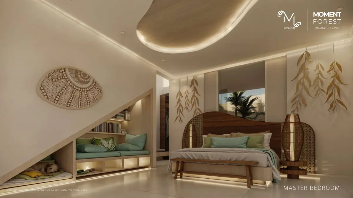 Discover modern tropical living in this beautifully designed 2-bedroom, 3-bathroom villa at The Moment Forest. Nestled on a 575 sq.m. land plot with a 387 sq.m. built-up area, this villa offers spacious living with thoughtfully crafted interiors. The open-plan layout seamlessly connects the living, dining, and kitchen areas, all designed to maximize comfort and functionality. Complete with a private swimming pool and professionally landscaped gardens, this villa provides an intimate, serene atmosphere surrounded by lush greenery perfect for couples or small families seeking peace, nature, and convenience.