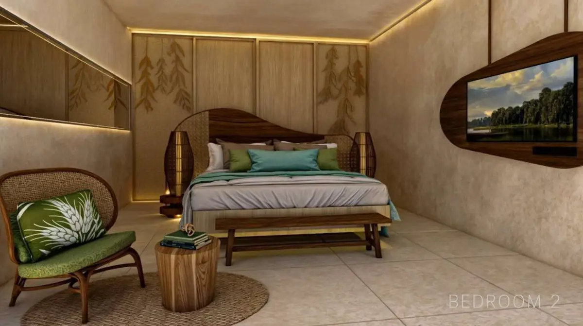 Relax into tropical comfort with this well-designed 2-bedroom, 3-bathroom villa at The Moment Forest. Situated on a 493 sq.m. land plot with a 406 sq.m. built-up area, this villa features an open-plan living and dining area that connects seamlessly to a fully equipped European Kitchen. Full-length glass doors lead directly to the private swimming pool and landscaped garden, creating an inviting indoor-outdoor living experience. This home is ideal for couples or small families who value privacy, modern design, and peaceful natural surroundings.