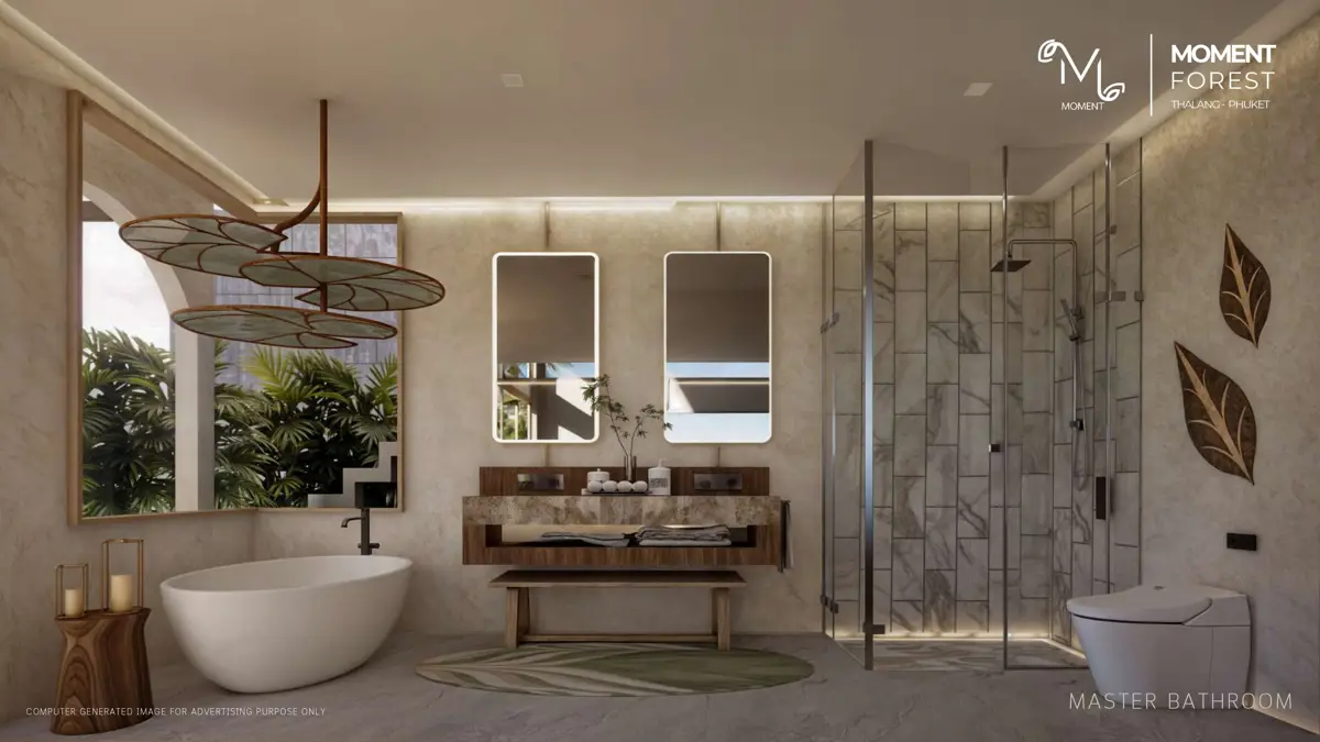 Discover peaceful tropical living in this thoughtfully designed 2-bedroom, 3-bathroom villa located within The Moment Forest. With a 512 sq.m. land plot and a spacious 375 sq.m. built-up area, this home offers open-plan living spaces that seamlessly connect the living room, dining area, and fully equipped European Kitchen. Expansive windows bring natural light into every corner while allowing for beautiful garden views. Outside, enjoy your own private swimming pool and professionally landscaped garden, creating the perfect escape for couples or small families seeking a harmonious blend of comfort, privacy, and nature.