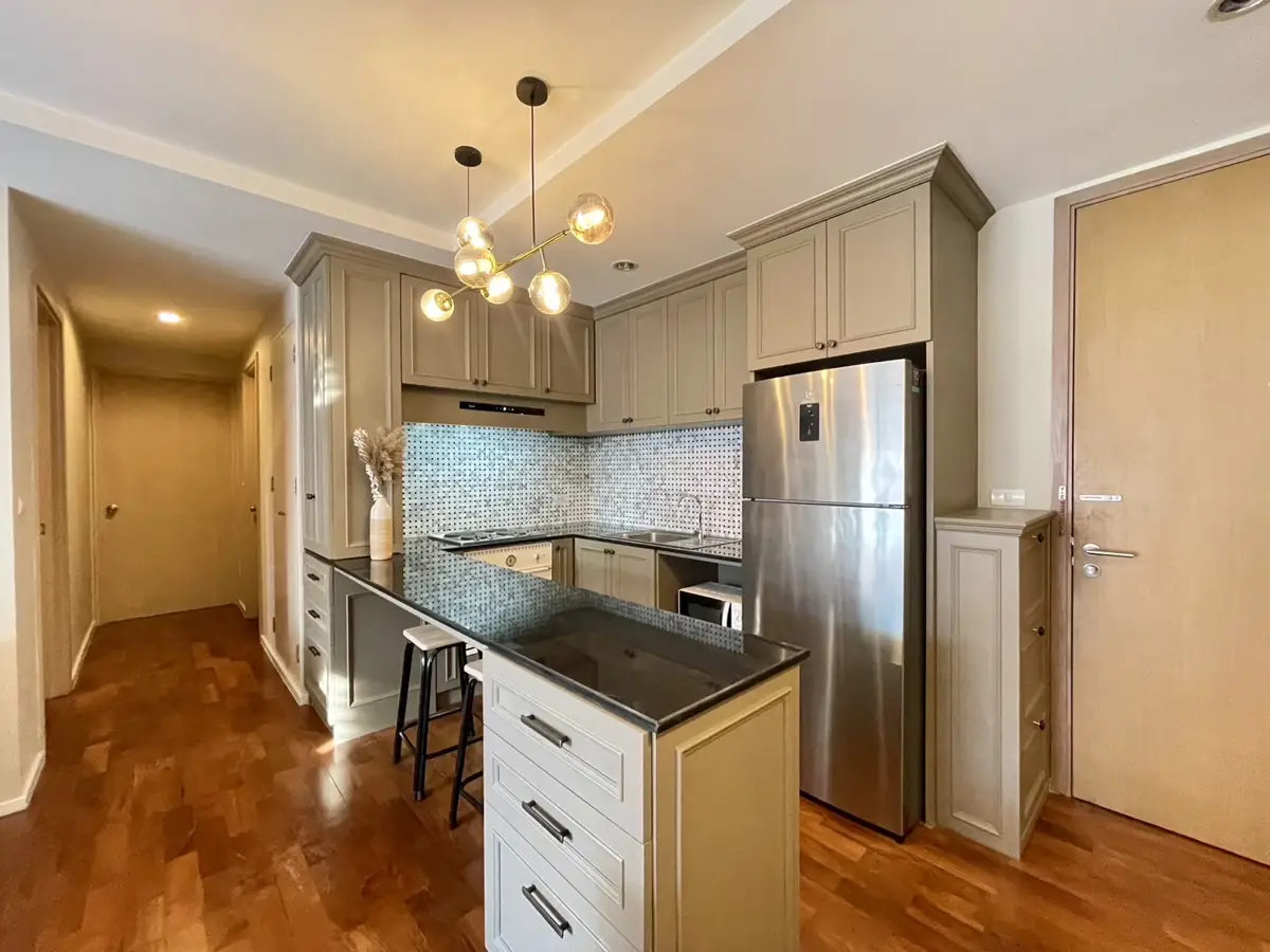 Available to rent and on the market for sale on Sukhumvit soi 8 is this lovely 2 bedroom, 2 bathroom condo at Siri On 8, by Sansiri. This fully furnished property was renovated in September 2022, is situated on the 7th floor with a street view (West) and measures 84 sqm. The building has a gym, infinity rooftop swimming pool, covered car parking and 24 hour security. Sukhumvit 8 is a quiet street with no through traffic and there are plenty of places to eat and drink in the surrounding area. The BTS Skytrain is at the end of the road and Terminal 21 and Benjakitti park are also nearby.