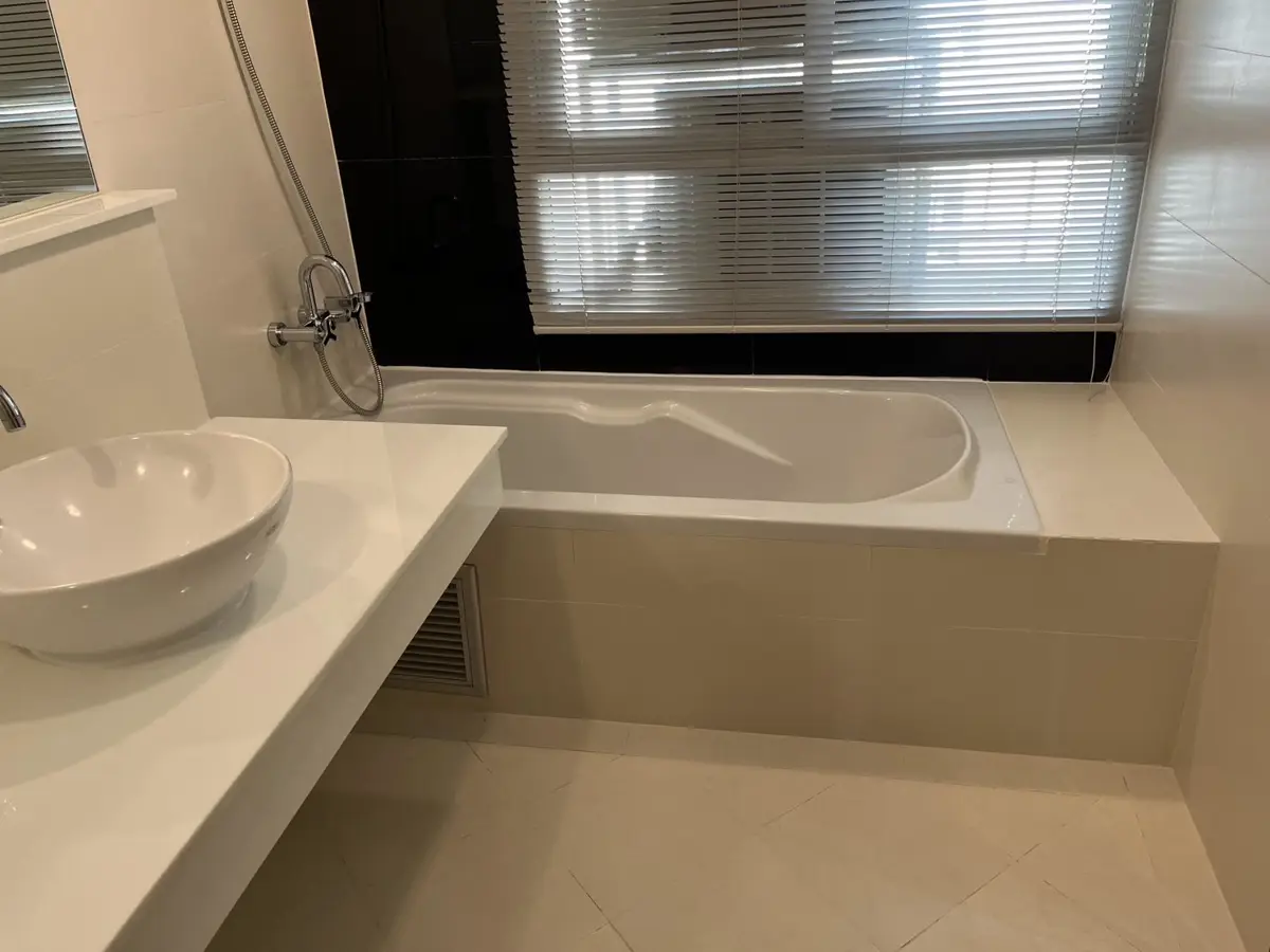 2 bedroom, 2 bathroom condo for rent. Large fully equiped kitchen with oven, stove, and microwave, washing machine and dryer. Both bathrooms have showers, master bathroom includes bathtub. Large master bedroom and smaller second bedroom both have large clothes storage areas. Condo includes walk-in storage closet. Gym and pool in building. 5 minute walk to Ekamai Skytrain, numerous restaurants, coffee shops, grocery stores in immediate area.