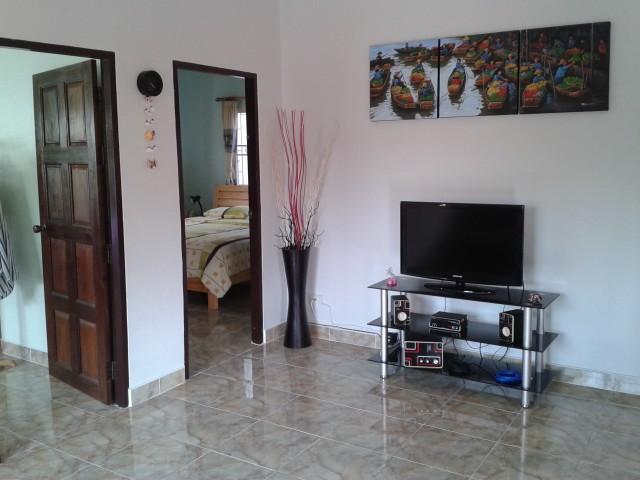 Nice House with Garden in a quiet Village (Mooban) outside of Fishing Town Ban Bang Sare. 2 Bedroom, 2 Bathroom, Livingroom, European Kitchen, 2 Air Con, Hot Water, Terrace, Garden Landscaping, Stainless / Alu Fence and Gate, Security Grids, Mosquito Windows, PSI Satelite Dish, Outdoor Lights around the House, Walkway (Concrete/Tiles) around the House, Ceiling Fan (Livingroom & Terrace)