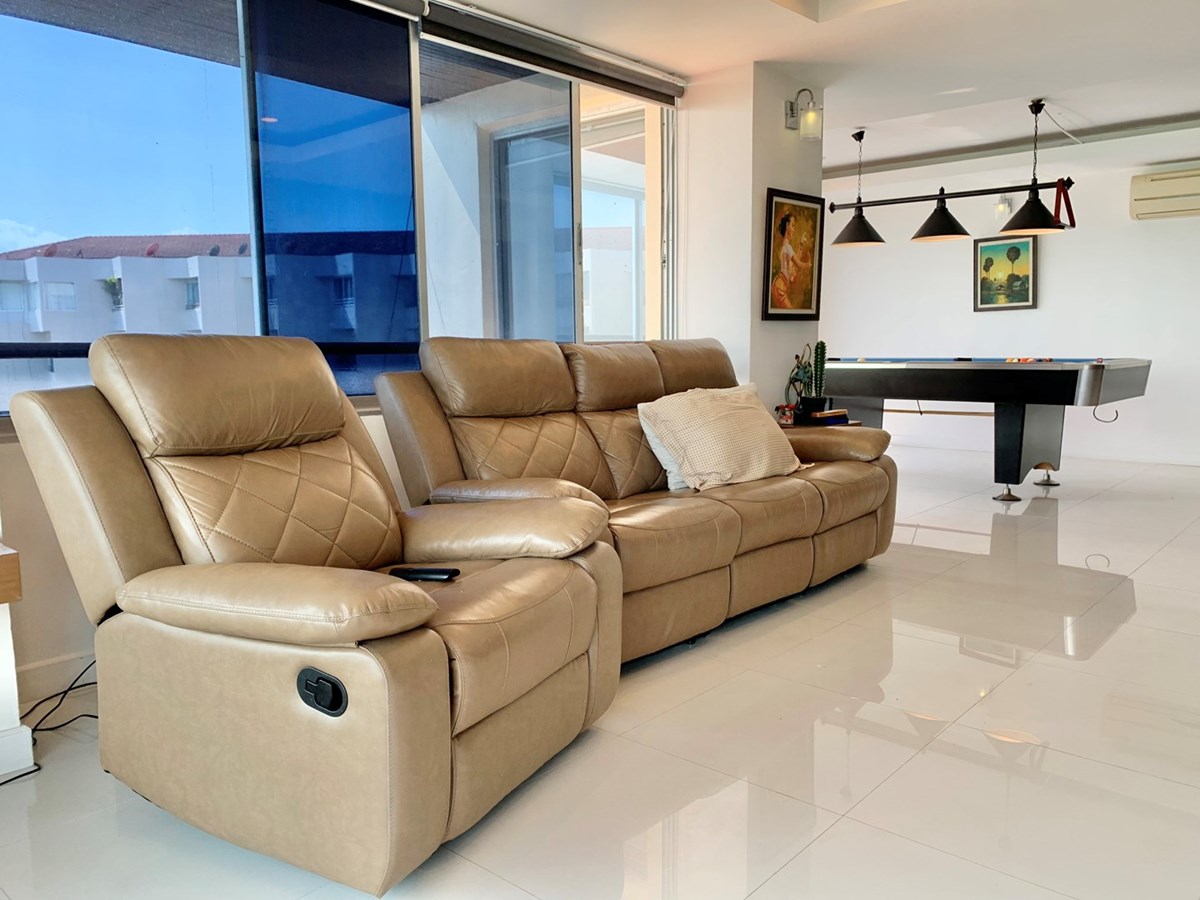 Large size 2 Bedroom, 2 Bathrooms Luxury Condo for sale at Phala Beach, in Ban Chang is rare to find. With twin living rooms, European kitchen, two balconies and Smart Home technology. New professional pool table and darts board, all high end appliances, washing machine, TVs, fridge with ice maker and more. Sold fully furnished to high standards. This is a prime area of Rayong now which is growing n popularity as many investors will already know. The sunsets and sea breezes of this unit are spectacular!