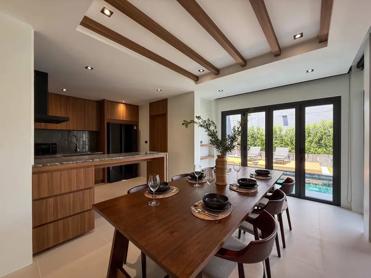 Imagine waking up to gentle sunlight streaming through wide glass doors. You brew your morning coffee in a modern wooden kitchen, then step out into your private pool area, surrounded by peace, comfort, and the kind of quiet that’s becoming rare these days. This home was designed for moments like these.