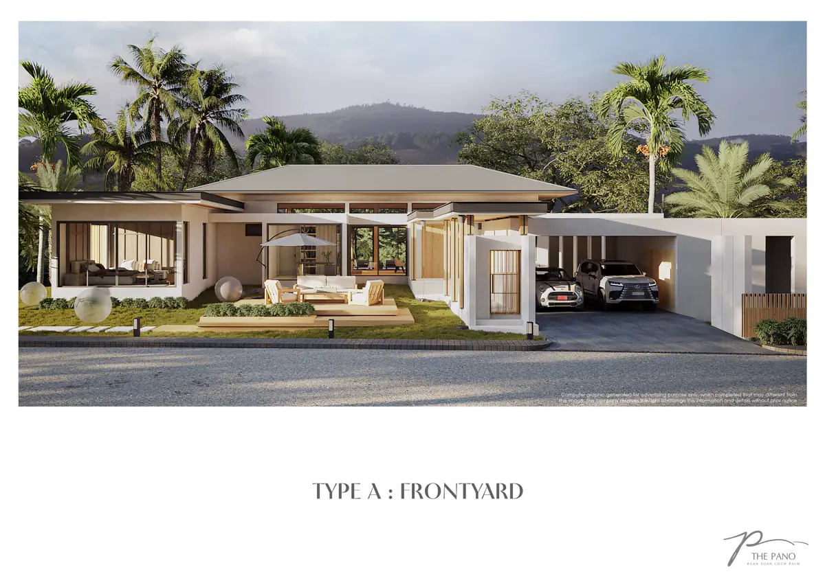 If you’re looking for a home that combines peace, greenery, and convenience in one perfect location, The Pano Baan Suan Loch Palm offers exactly that. This 3-bedroom, 3-bathroom luxury villa sits on over 1,300 sqm of land, featuring a private swimming pool, a spacious garden, and serene mountain surroundings. Located just minutes from Loch Palm Golf Course, international schools, shopping malls, and the island’s most famous beaches, the villa offers the ideal blend of privacy and accessibility.