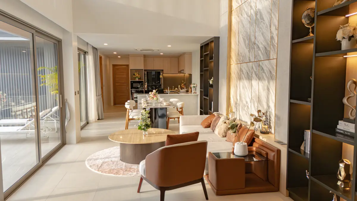 The Type B 2-storey villas at Le Villa Lake combine modern design and comfort, offering a spacious living area with a private swimming pool located on the ground level, providing a relaxing atmosphere to unwind in peaceful surroundings.