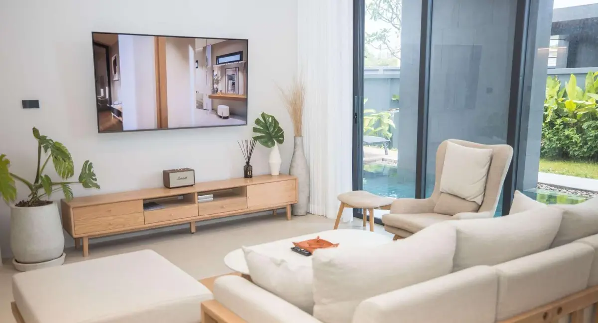 There are spacious open-plan living and dining area, a kitchen and 3 comfortable bedrooms all with ensuite. Every room has large sliding glass doors that allow natural light to enter the villa making it bright and more relaxing. The private swimming pool is surrounded by lovely small gardens, a sundeck and a pool terrace.