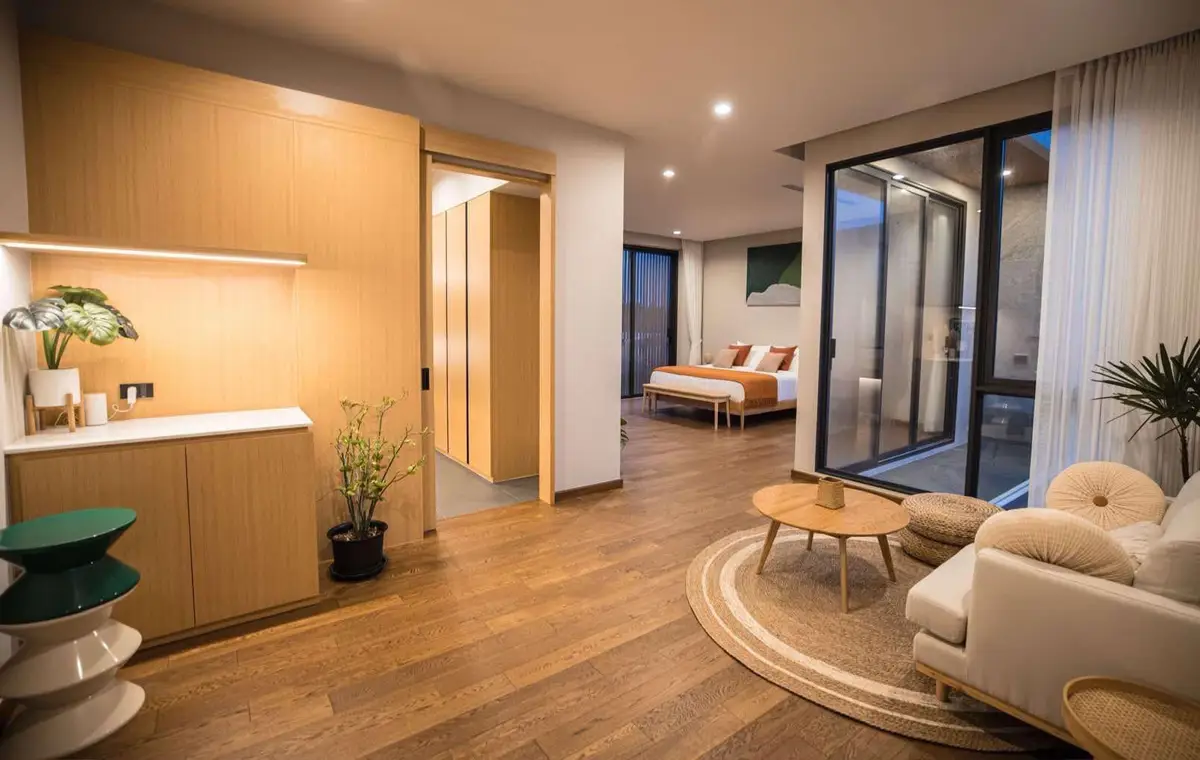 The development offers 10 modern loft exterior style pool villas and each villa comes with 2 storeys and tastefully decorated interiors.
