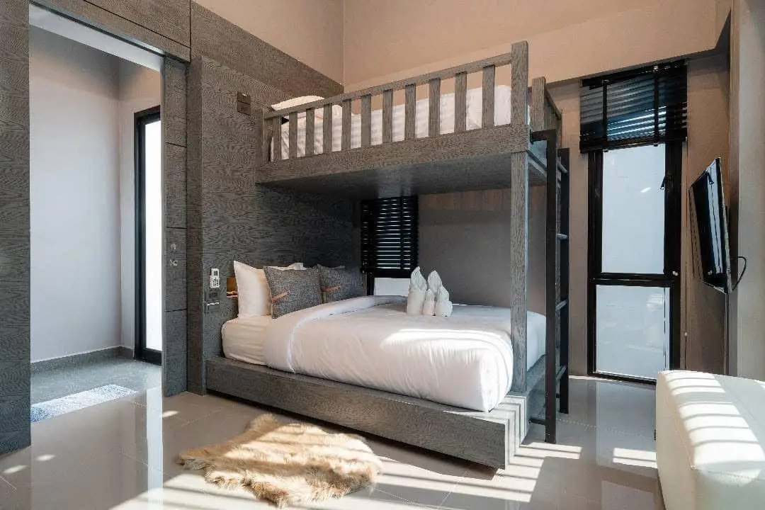 Wallaya Villa Pasak Soi 8, a luxurious 2-story detached house project that provides the convenience of living. With the spacious living area giving airy and comfortable feeling and quality furniture, this modern house offers a useful living function. The house is well decorated in a modern loft, emphasizing simplicity. The signature of the design is to use wood, brick, and cement. The swimming pool is emerald green, paved with a special type of lava stone. These details will create a special moment for every unit of the project. Besides, Walaya Villa Pasak Soi 8' offers the ultimate privacy as the project has 4 units, surrounded by a tranquil atmosphere of rubber plantation. The location also provides convenient travel, just 10 minutes to Bang Tao Beach, another beautiful beach of Phuket, and 20 minutes to Phuket International Airport. 'Walaya Villa Pasak Soi 8' is the perfect answer for every living need.Project InformationWallaya Villa Pasak Soi 8 is located in Soi Pasak 8, Cherngtalay, Thalang, Phuket. It is a development from Phuket Exclusive Development Company and was completed in 2017. The project consists of 4 2-story single-detached houses. House Types and DetailsA full-furnished 2-story detached house with a private swimming pool as follows; - Jasmine: 2 bedrooms, 2 bathrooms (337 sq.m) - Rose: 2 bedrooms, 2 bathrooms (329 sq.m) - Sun Flower: 3 bedrooms, 3 bathrooms (326 sq.m)Facilities - 24 hours security system with CCTVDirectionTo get to the project by car, start from Phuket International Airport, heading on Thep Krasattri Road (Route 402). Go straight for 9.8 kilometers, then turn left onto Don Chom Tao Road (Route 4030) for 3.3 kilometers. Turn left into Soi Pasak 8 for 400 meters and turn right into Soi Mittraphap for 130 meters. You will find the project on your right-hand side.