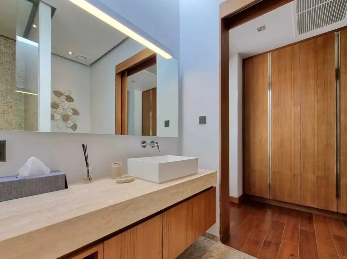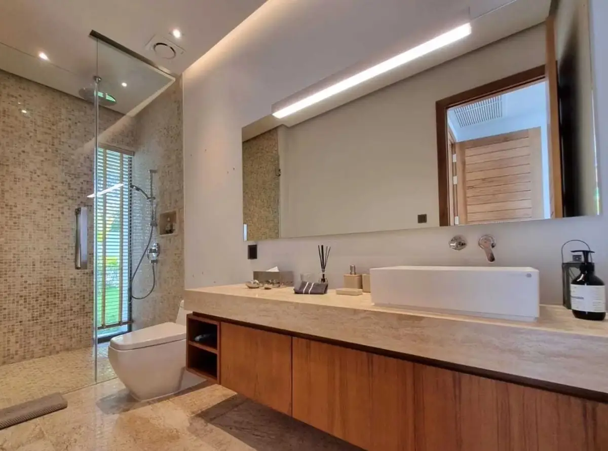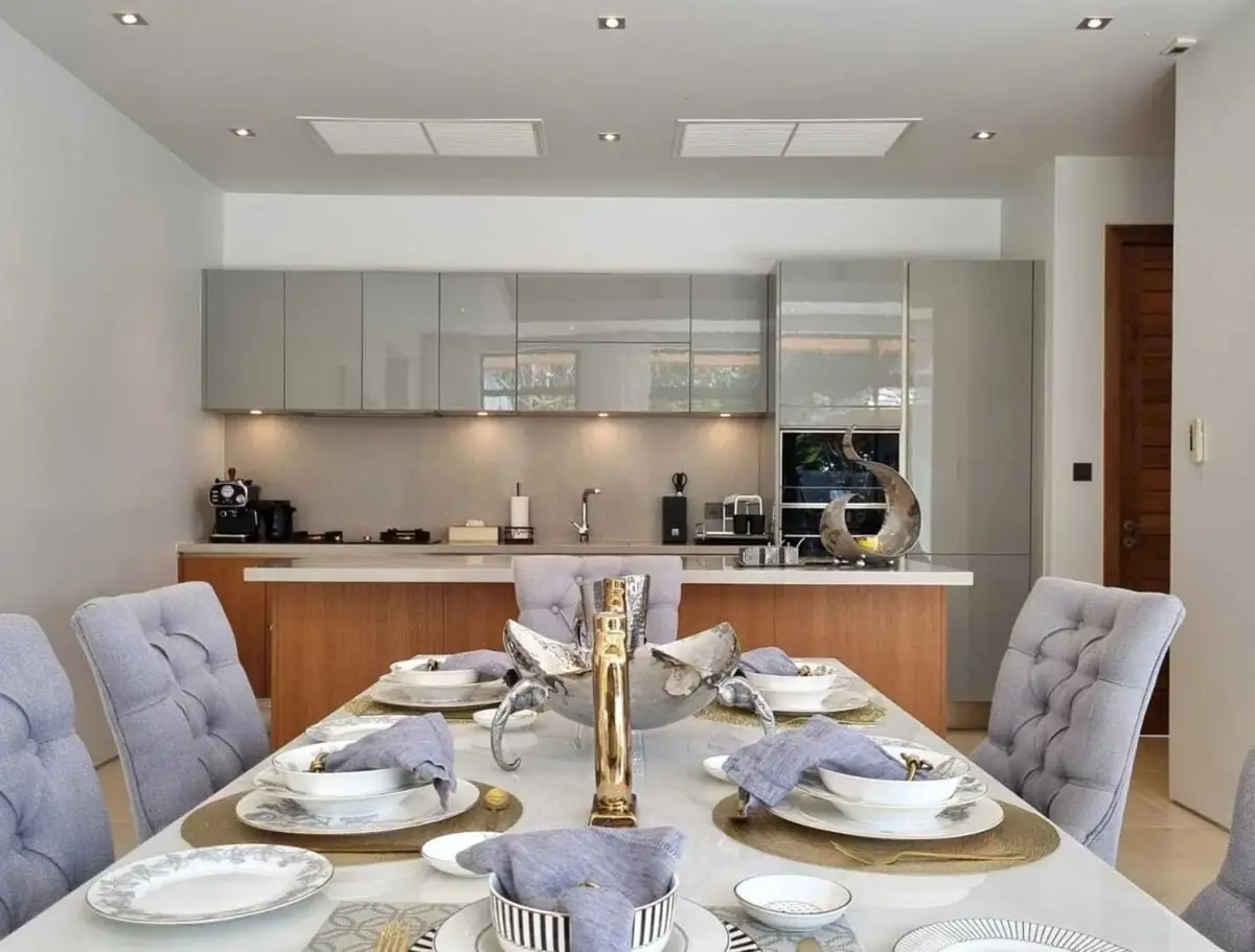The villa features spacious living and dining areas that open directly to the private pool and landscaped gardens, creating a seamless indoor-outdoor lifestyle. Each bedroom is thoughtfully designed with en-suite bathrooms, ensuring maximum privacy and convenience. The fully equipped modern kitchen caters to all your culinary needs, while the tasteful interior design and high-quality furnishings enhance the sense of sophistication throughout the home.