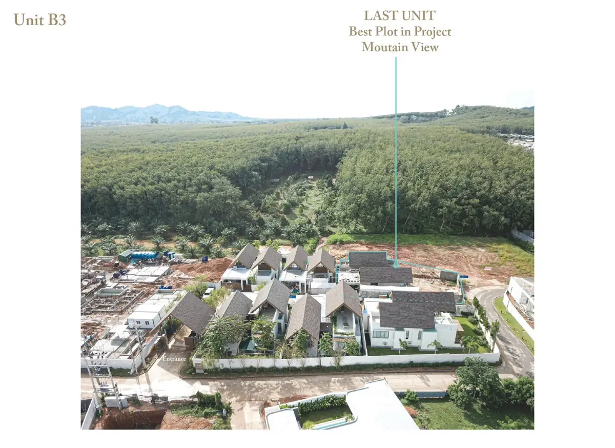 This 3-bedroom, 3-bathroom mountain view villa is the last available unit in a boutique collection of only 6 villas at Ansaya Phuket. Located on the best plot in the project, this villa enjoys unobstructed views of lush mountains, excellent privacy, and serene surroundings.
