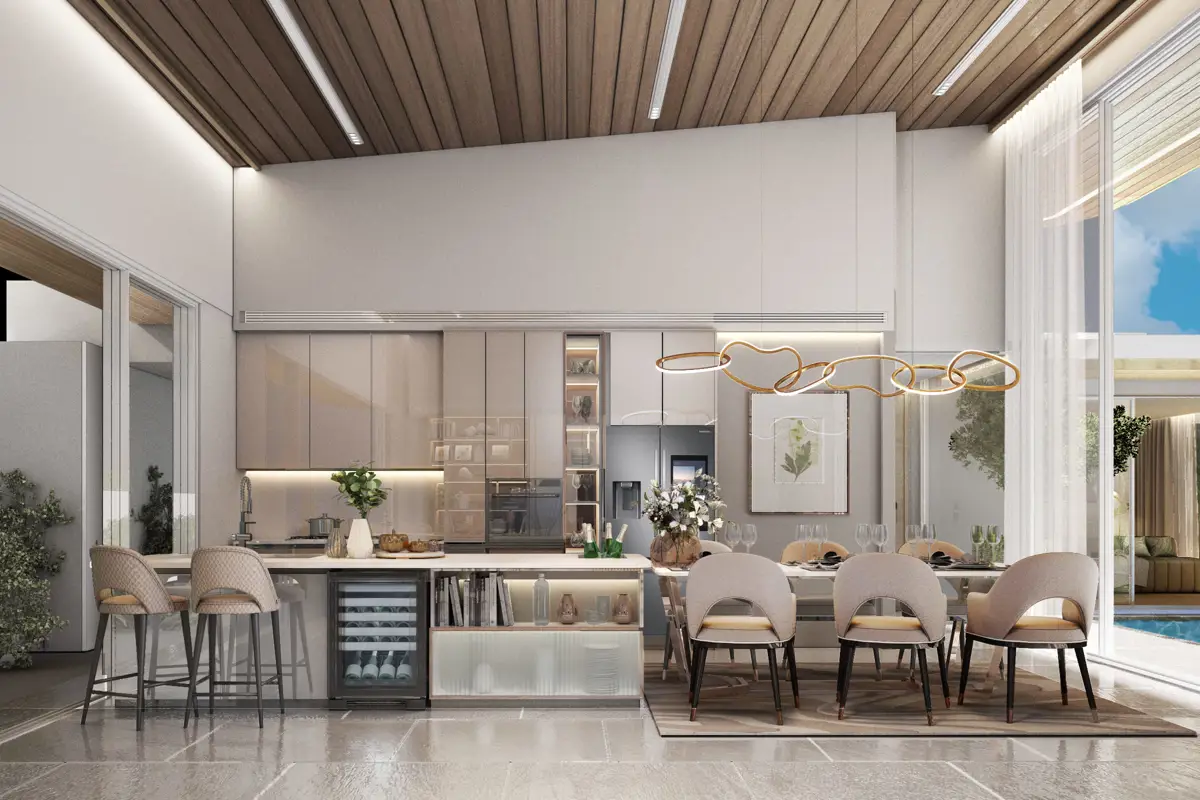 Each villa features 3 spacious bedrooms and multiple en-suite bathrooms, designed with soft lighting and subtle materials to evoke a deep sense of calm. The master suite offers a peaceful escape with views of greenery and space for reflection. Built-in wardrobes and thoughtfully placed furniture ensure convenience without sacrificing aesthetics.