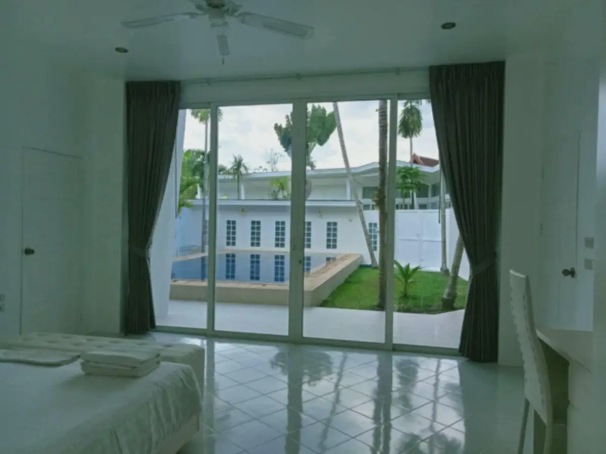 Rental includes free WiFi, garden maintenance twice per month, and pool maintenance four times per month. Utility charges such as electricity are billed at 7 THB per unit and water pump service at 990 THB per month. The property is managed full-time with on-site mechanical technician support 6 days a week.