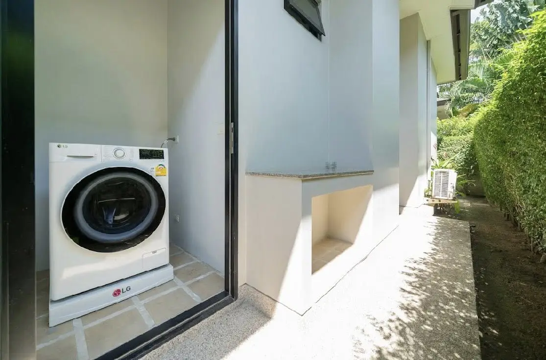 The property features 3 bedrooms and 4 bathrooms, a private garden, and a refreshing 4x8 meter private swimming pool. It is the perfect sanctuary for those seeking privacy and space in a secure environment. Available for 160,000 THB/month (1-year contract).