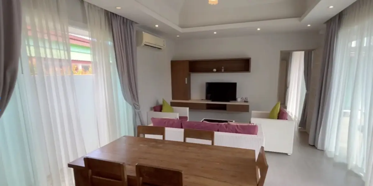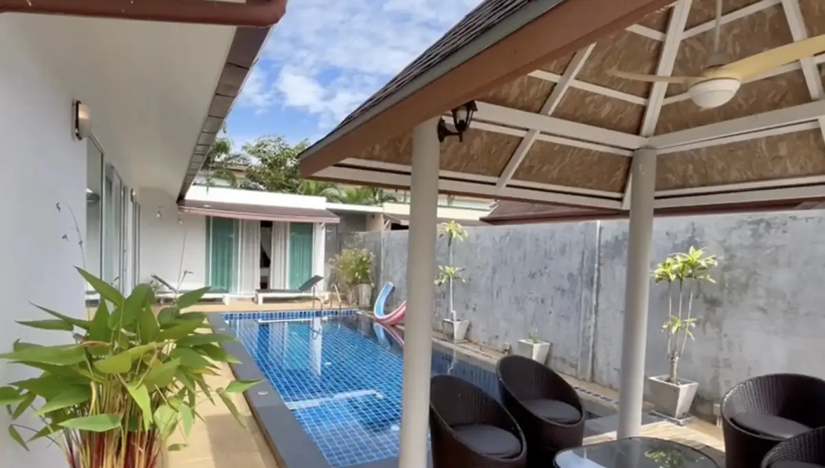Nestled in the peaceful area of Pasak Soi 1, this elegant 3-bedroom, 3-bathroom private pool villa offers 240 Sq.m. of luxury tropical living at Sabai Pool Villa, located in Choeng Thale, Phuket. Completed in August 2020, the villa combines modern design with natural surroundings, creating a perfect retreat for comfortable long-term living.