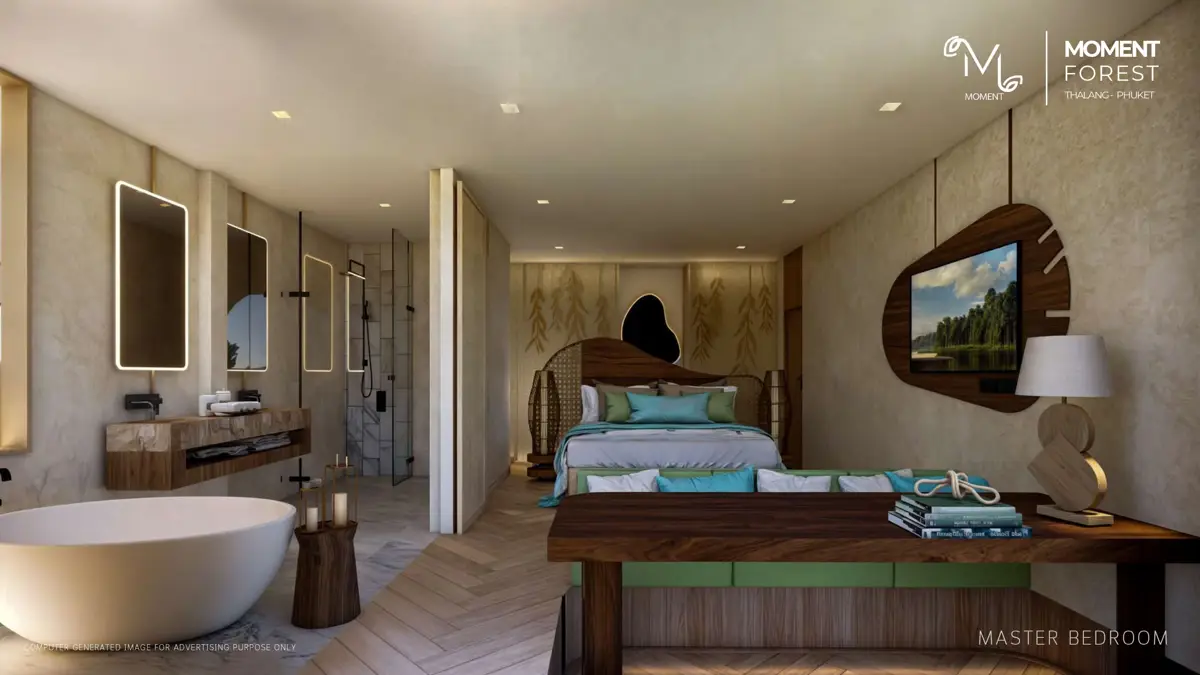 Step into this elegant 3-bedroom, 4-bathroom villa at The Moment Forest, designed for modern comfort and functionality. Situated on a 512 sq.m. land plot with a 375 sq.m. built-up area, the villa features expansive open-plan living and dining areas, complemented by a stylish European Kitchen. Full-length sliding doors open onto the private swimming pool and beautifully landscaped garden, perfect for outdoor entertaining or peaceful relaxation. This residence offers an ideal balance of privacy and open space, suited for families or those seeking a tropical retreat with refined living standards.