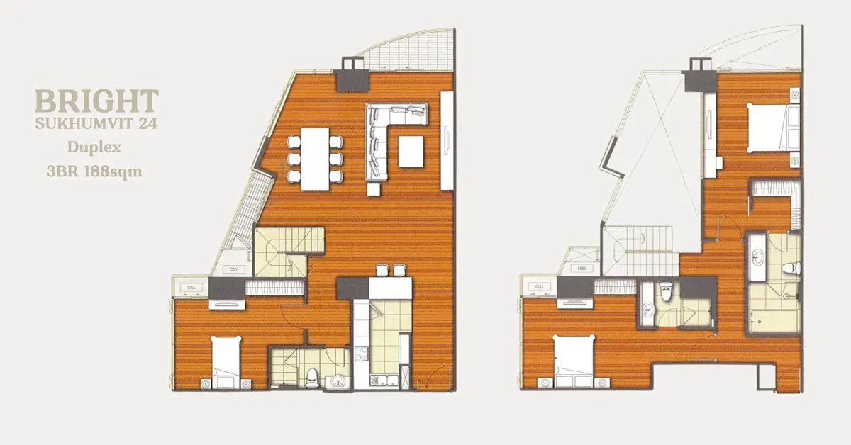 This is a 3 bedroom duplex condo for rent at Bright Sukhumvit 24. The condo comes fully furnished, has 3 bedrooms, 3 bathrooms, measures 189 sqm. and is on the 19th floor. Bright Sukhumvit 24 is located on Sukhumvit soi 24 in the heart of Bangkok about 10 mins walk from Phrom Phong BTS Skytrain. For more details and to arrange a viewing of this condo for rent in Bangkok contact us at BKKCondos.