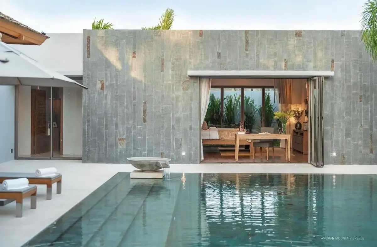 Designed in a U-shape, most parts of the villa have direct access to the pool terrace, swimming pool, and garden, especially the master and first guest bedrooms. Outside, along with the private swimming pool, there are poolside terraces and a sala, ideal for soaking up the sunlight or enjoying the natural breeze.