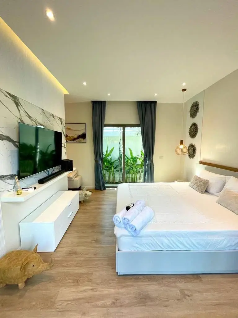 Private 4-bedroom villa with a pool and jacuzzi, offering a peaceful atmosphere for relaxation or long-term living.