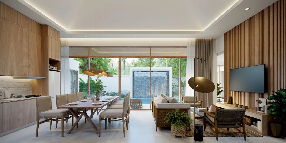 The LENSA house type is a premium modern single-storey villa offering 4 bedrooms and 5 bathrooms, ideal for larger families or those who love to host. The property features an expansive living, dining, and kitchen island area of 34.50 sqm, a multi-purpose room, and a master suite with walk-in closet and luxury bathroom. Outdoors, residents can enjoy a private swimming pool (4 x 12 m), a pavilion, pool deck (39.52 sqm), and generous greenery. With a built-up area of 349.64 sqm, this villa seamlessly blends elegance with functionality in the heart of Phuvista 3.