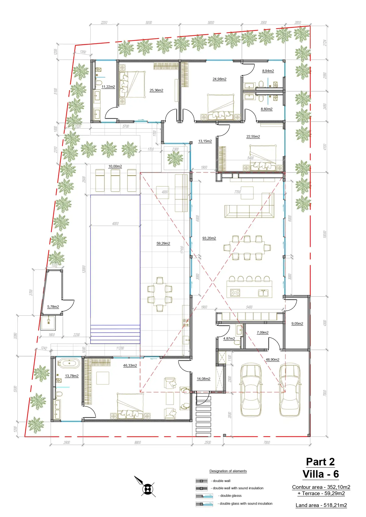 This modern 4-bedroom villa in the prestigious Sunti Villas community offers a generous built-up area of 518 sqm, designed for both privacy and open-plan living. The home features a European kitchen by Miton, complete SMEG appliances, and luxury furnishings by Guzzini e Fontana. Floor-to-ceiling 3.6-meter-high double-glazed windows and a Daikin VRV air-conditioning system ensure bright and comfortable interiors. With a KNX smart home system, walk-in wardrobes in every bedroom, and a shallow pool in the garden, this villa offers the perfect blend of functionality and elegance in one of Phuket’s most sought-after gated estates.