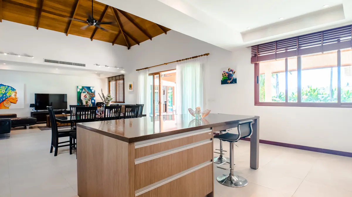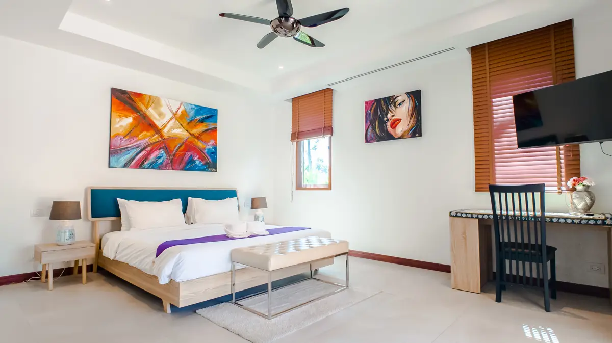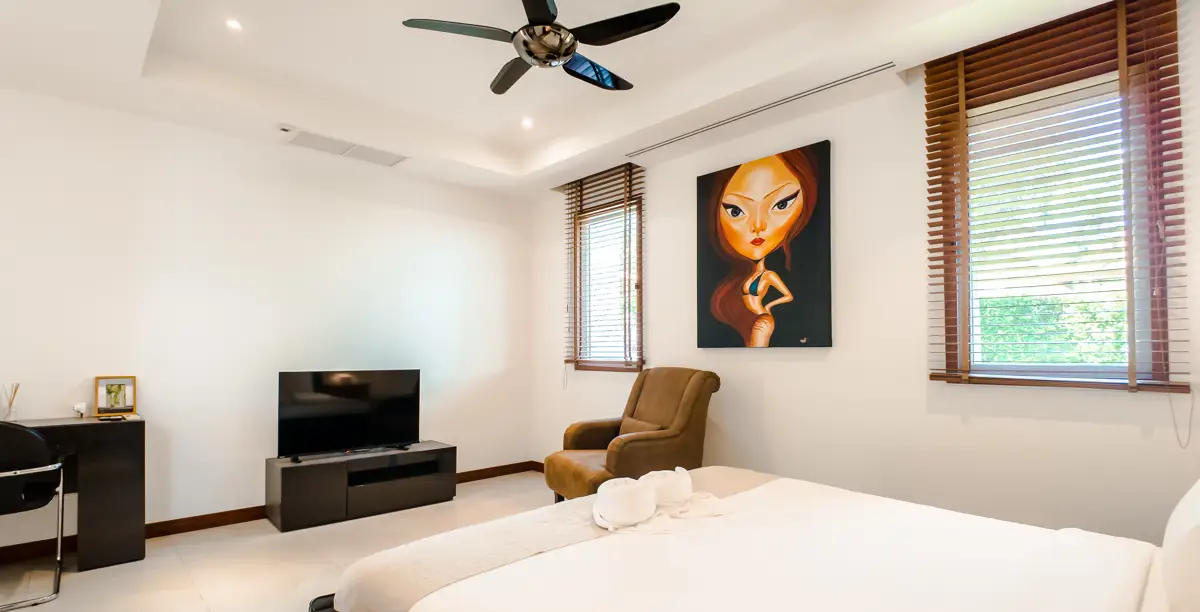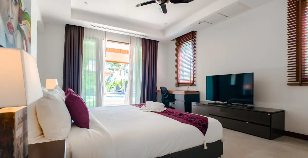 Serviced 4-Bedroom Pool Villa for Rent at The S Villa 8, Choeng Thale. Discover The S Villa 8, a spacious 4-bedroom, 5-bathroom pool villa located in Choeng Thale Soi 4. This property offers a premium, secure living environment with 24-hour CCTV, high-speed 3BB Wi-Fi (1 Gbps), and Cable TV included in the rental package.