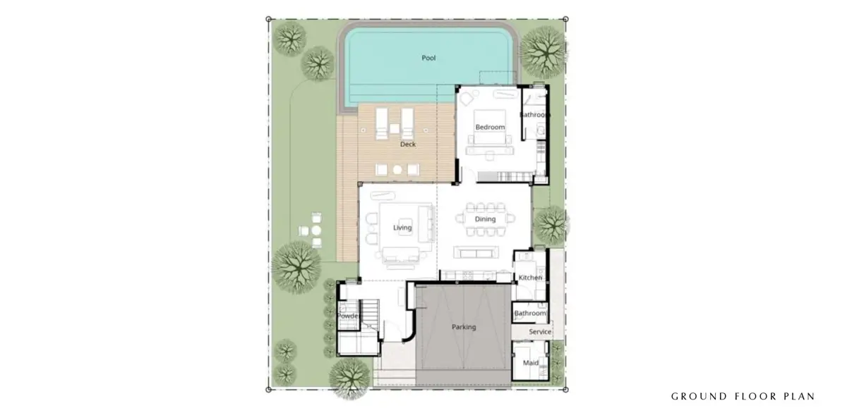 Situated within Sri panwa Lagoon Residence, this 4-bedroom pool villa offers 404.96 sq.m. of land area and a 381 sq.m. built-up space. The villa includes 4+1 bathrooms, 2 parking spaces, and a maid room. The thoughtfully designed layout seamlessly connects living, dining, and outdoor entertaining areas, all while providing stunning Creek views. This villa offers an ideal blend of modern comfort and tropical serenity.