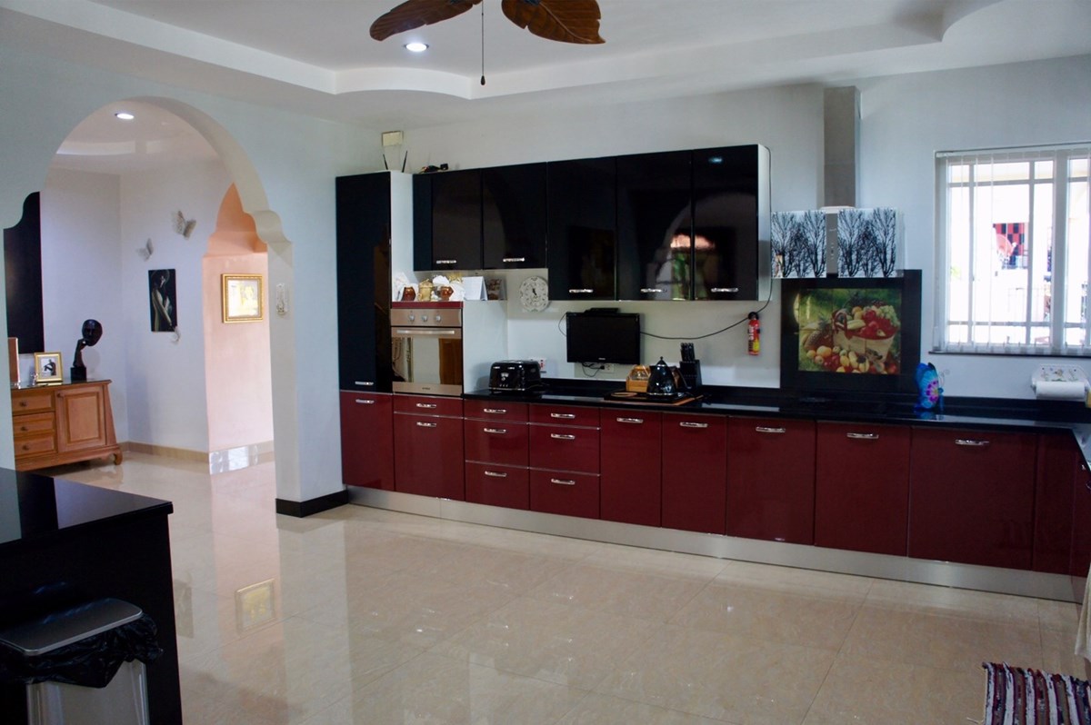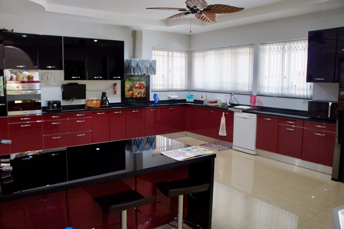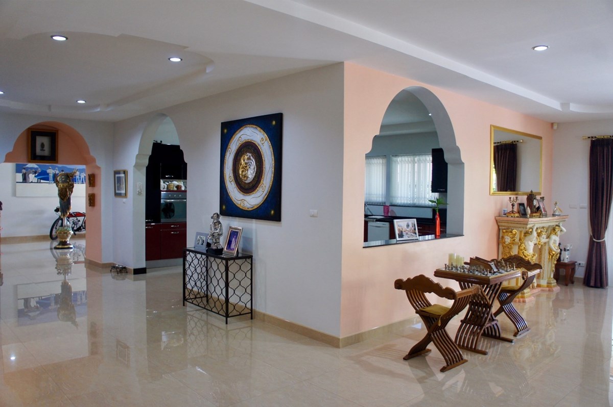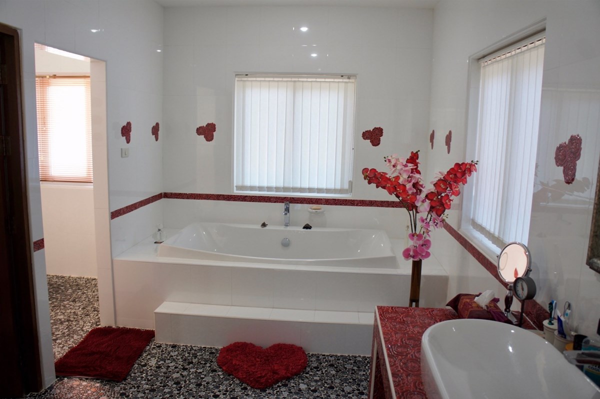 We have personally inspected this villa, just minutes from our office we would love to show it to you. A 4 bedroom, 5 bathroom, architect designed house with large mature landscaped garden on a private road on the beach side of Sukhumvit Road just 400m. from the shore. High quality European style kitchen. Well constructed to high standards and superbly decorated and presented. The magnificent master bedroom features an en-suite with a luxury full size bath and shower. The gardens have a jacuzzi pool and covered seating/barbeque area. There are only 30 houses in this high end peaceful development. The house benefits from its own well. As you will see from the pictures quality abounds in this fine residence and we recommend an early viewing.