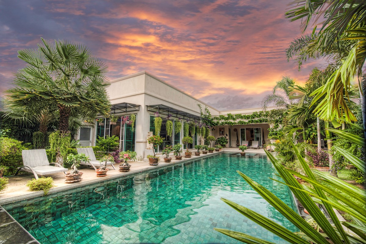 Private pool with landscaped garden.