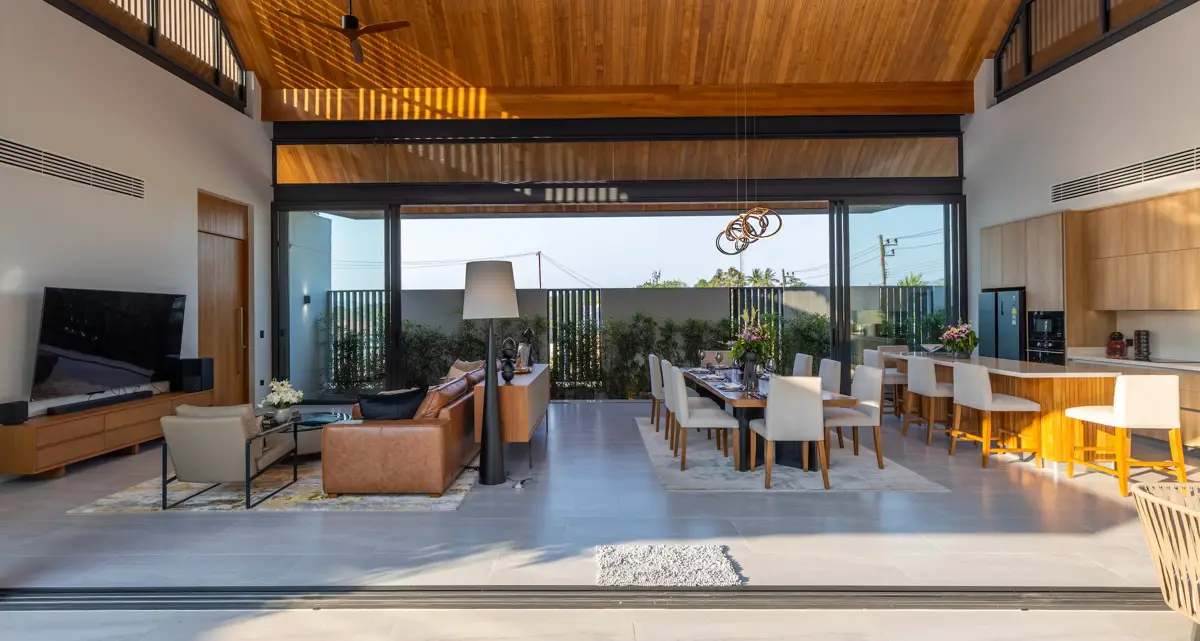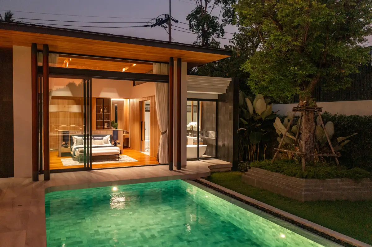 Discover a refined blend of modern luxury and traditional Thai elegance at AVANA Luxury Villas. Nestled in a prime location just minutes from Bangtao and Layan Beach, these exclusive villas are thoughtfully designed to balance privacy, space, and style. The architecture combines graceful Thai gable roofs with sleek contemporary design, while the 8-meter-high ceilings create a sense of grandeur and openness, filled with natural light and tranquil energy.