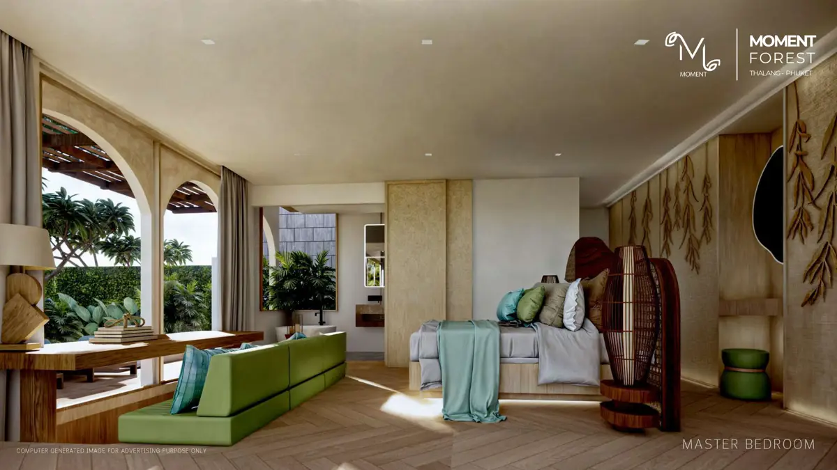 Indulge in tropical luxury with this expansive 5-bedroom, 5-bathroom villa at The Moment Forest. Situated on a 493 sq.m. land plot with a 406 sq.m. built-up area, this villa offers spacious living areas ideal for large families or frequent entertainers. The open-plan living and dining areas flow effortlessly to the outdoor private swimming pool and beautifully landscaped gardens. Complete with a fully equipped European Kitchen, this villa offers privacy, space, and modern tropical elegance in one of Phuket's most tranquil locations.