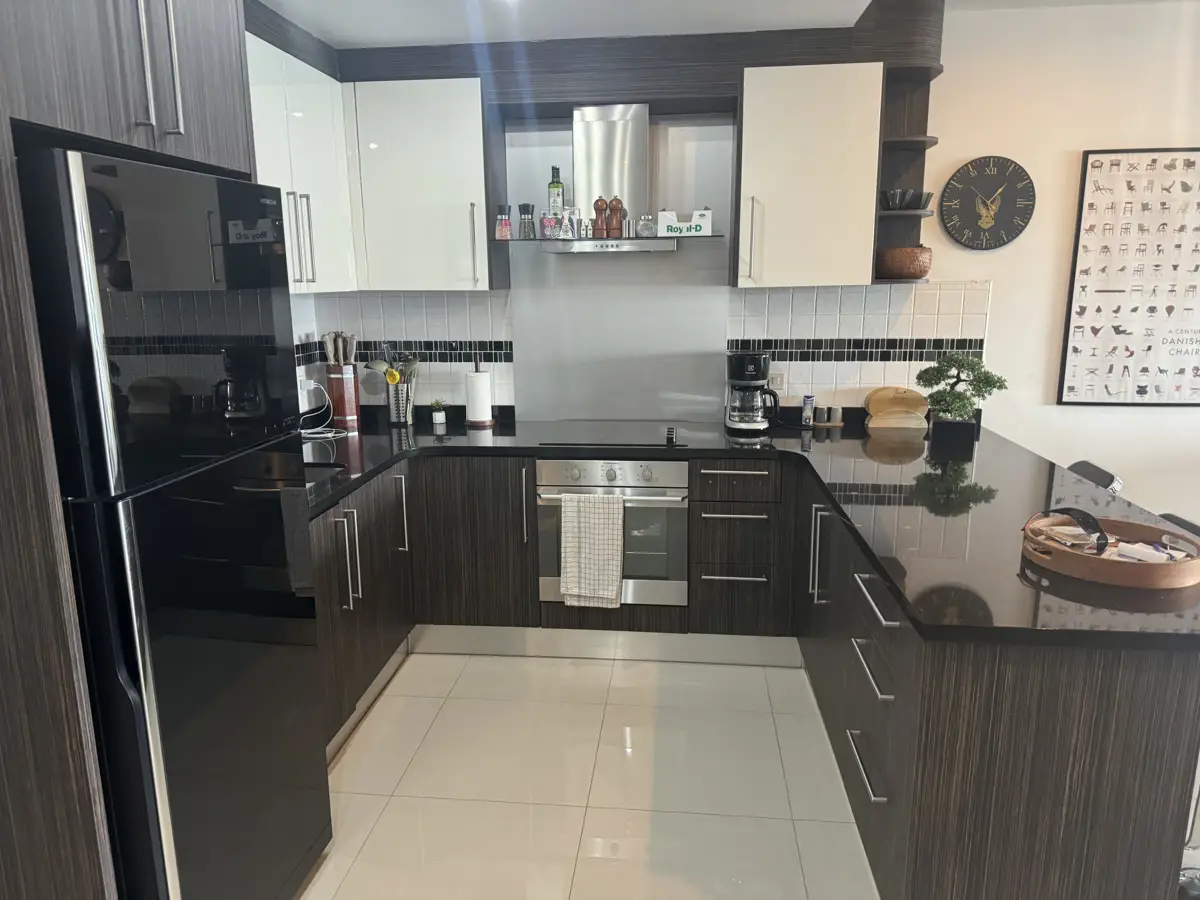 Al the units comes with top European standard of tiles, kitchen and bathrooms. Double insulated walls, PVC windows and doors with double-glazing. European kitchen with ceramic hob and oven, extractor fan, granite countertops, Air-Con in all rooms. Scorpion outer and inner doors. Covered terrace with ceiling fans. TV and internet. Built-in wardrobes etc. The top facilities include a roof top swimming pool and sundeck and a BBQ are. Under ground car parking, reception, maid service and 24h security.
