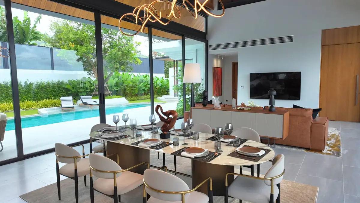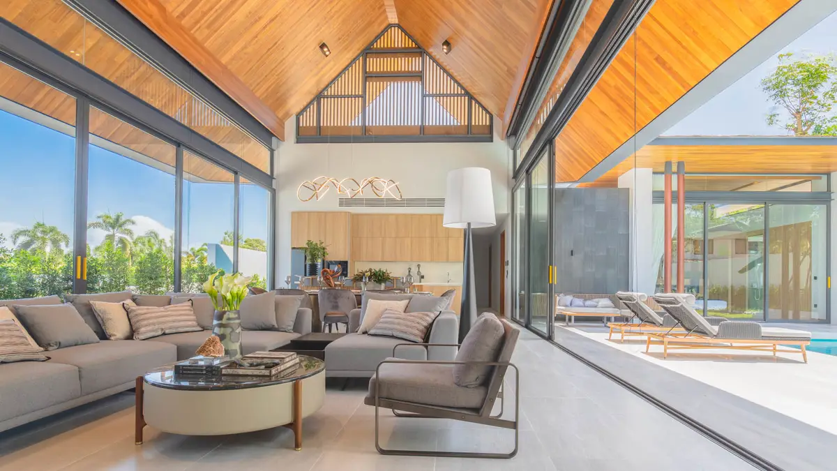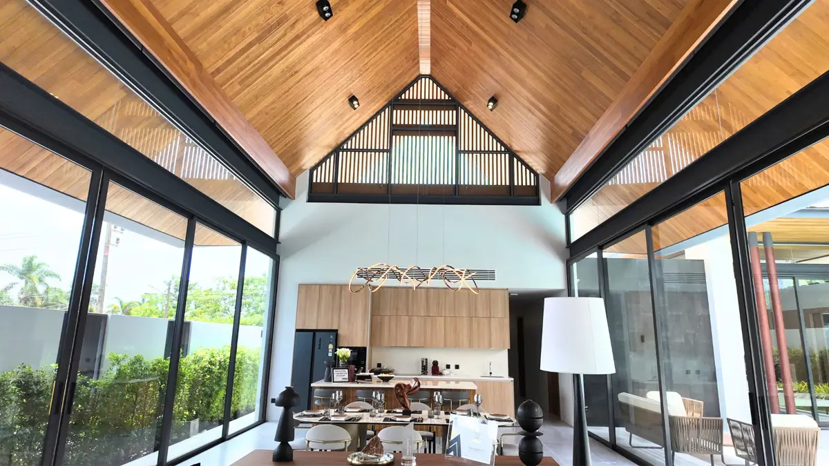 The unique villas seamlessly combine a traditional Thai gable roof's charm with contemporary grace. Each meticulously crafted detail caters to an extraordinary lifestyle while maintaining individual privacy and fostering family connections. AVANA's inviting living space with 8-meter-high ceiling forms the spectacular backdrop for creating and cherishing unforgettable moments. Experience a luxurious lifestyle like never before with AVANA.