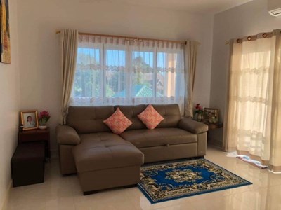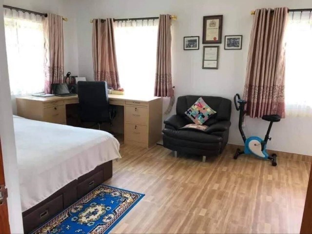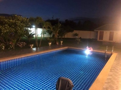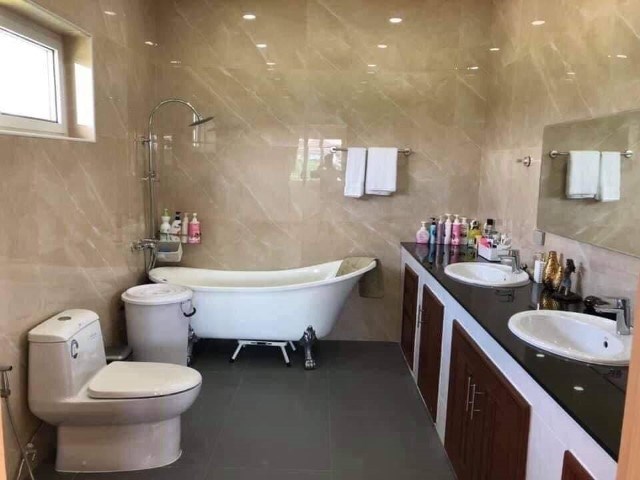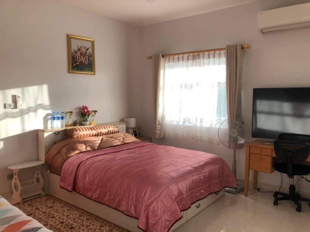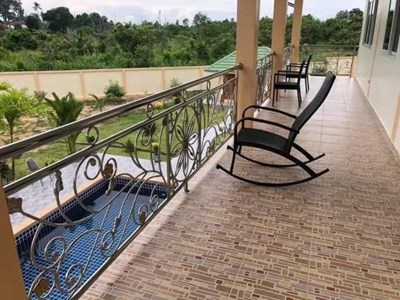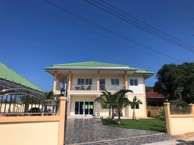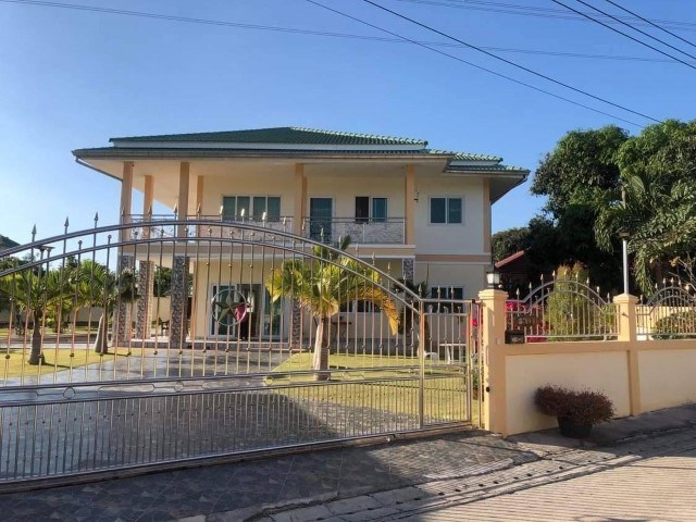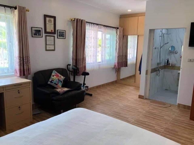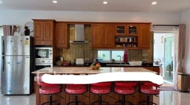 Family 2 Story house with large private swimming pool and landscape garden in Na Jomtien for sale, land size 300TW (1,200 Sqm), living area 350 Sqm, 4 bedrooms, 5 bathrooms, fully furnished and decoration, fitted European kitchen style, table bar and is fully fitted with high quality appliances, electric hop, electric oven, fridge, microwave, next to the kitchen has dinning table, living rooms with large comfortable sofa and flat screen Tv, air con and the large terrace overlooks the large swimming pool. There is also a Sala for relaxing amid the tropical garden.