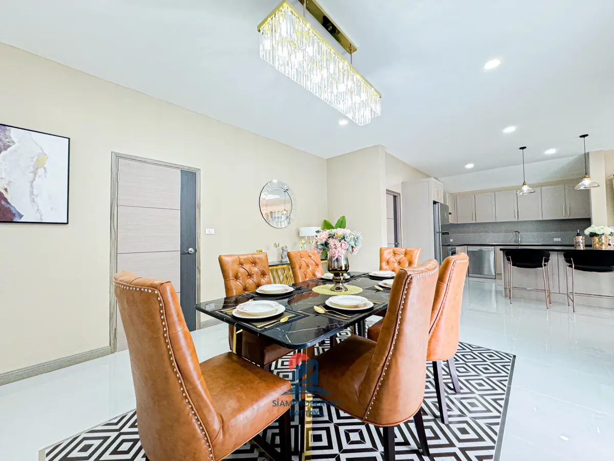This house has a Private Pool. The property is situated on 360 sqm of land and has a living area of 220 sqm including 4 Bedrooms and 5 Bathrooms. Come with fully furnished, European kitchen and outdoor Thai kitchen. This house is sale in Thai ownership with a Village view.