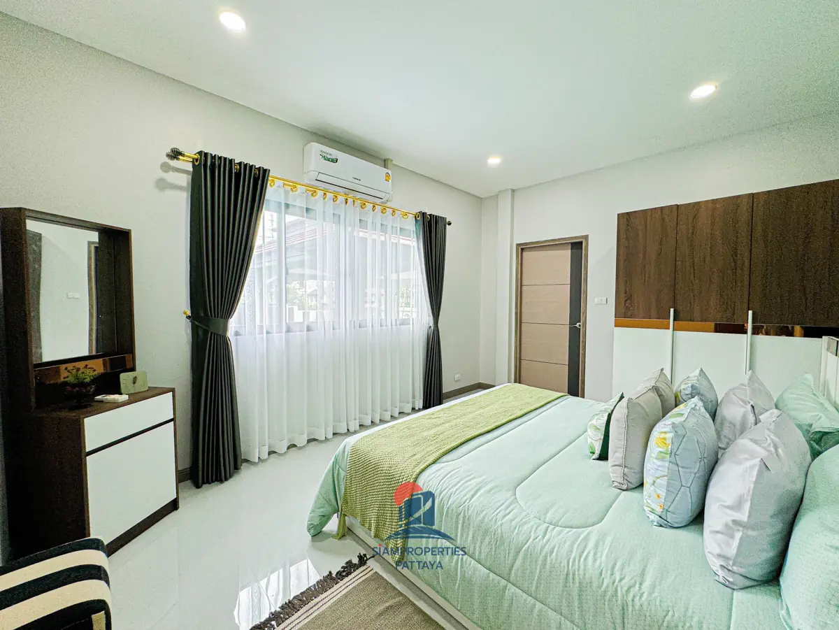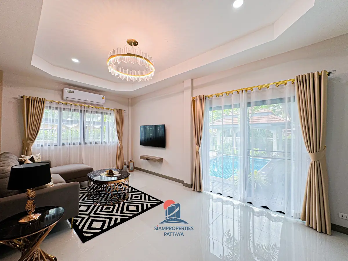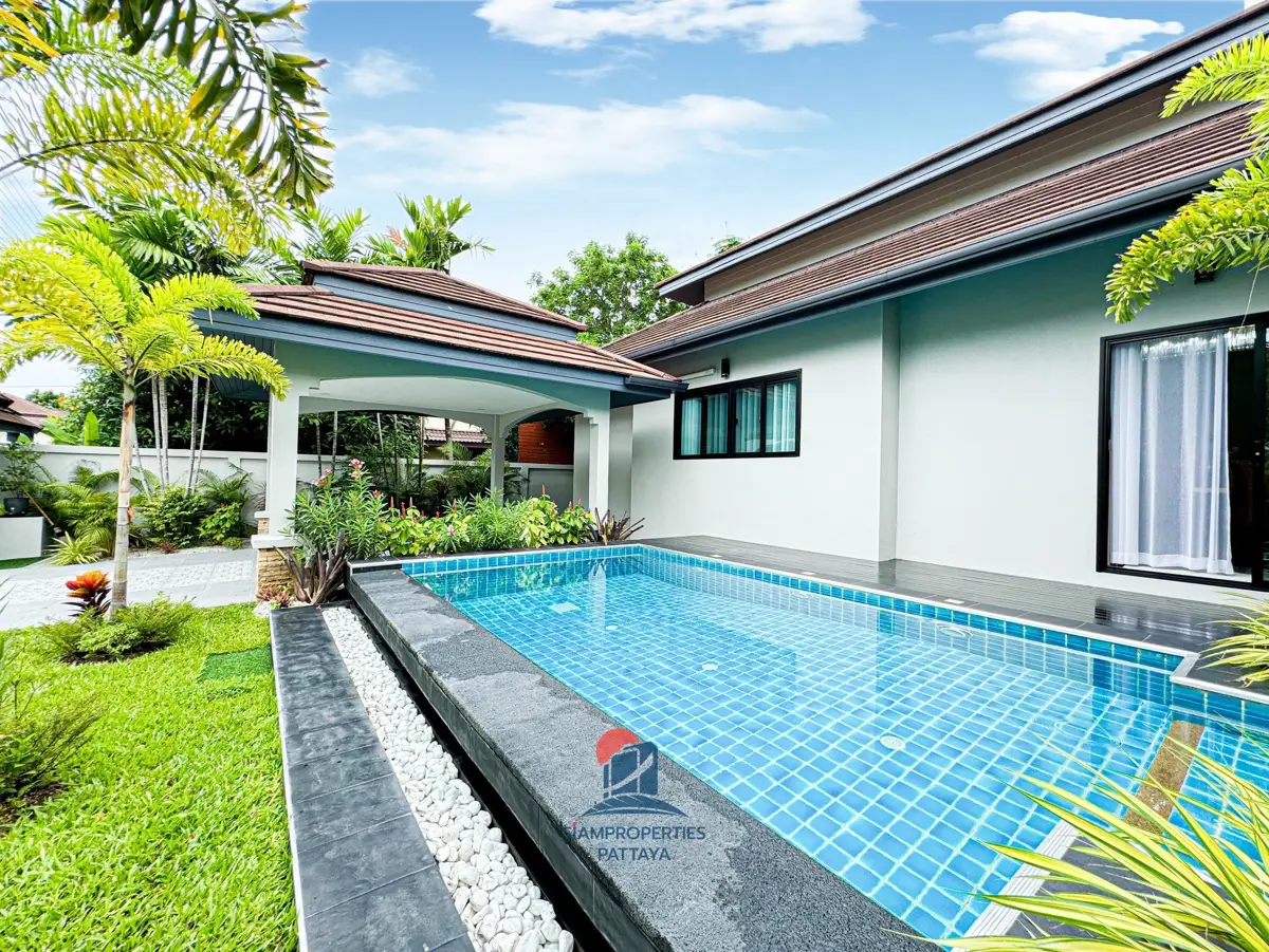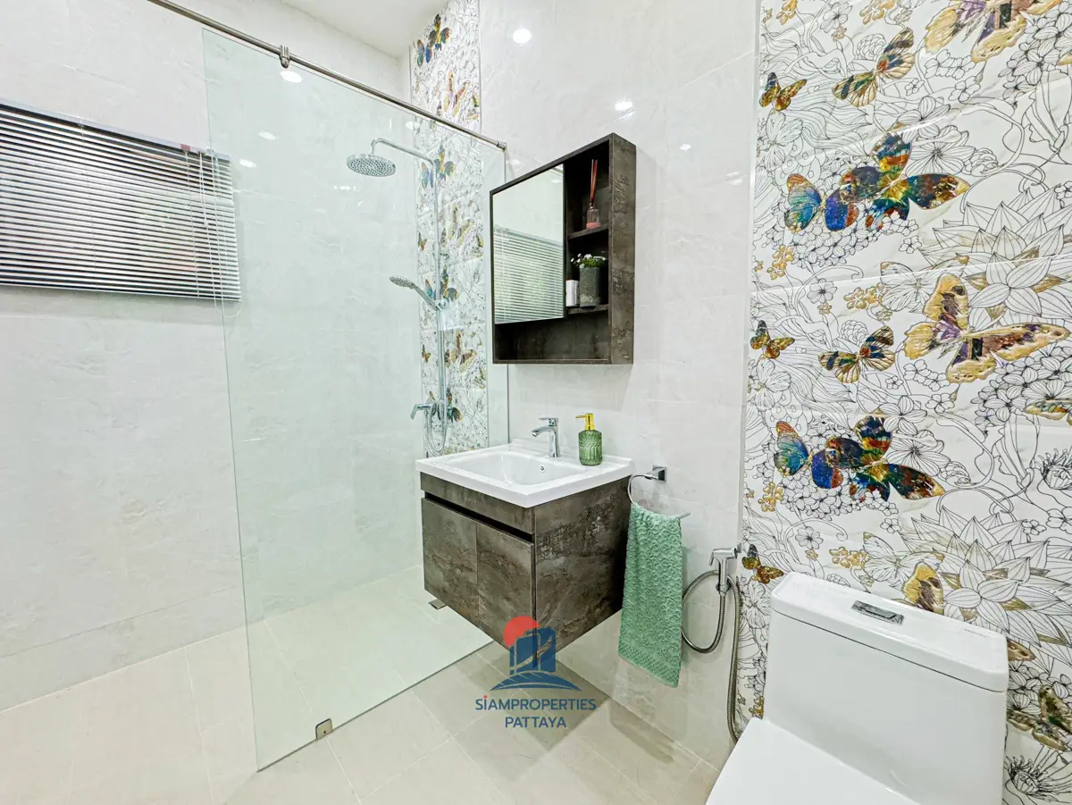 This Pattaya Pool Villa for is in Baan Baramee, located near Sukhumvit Road, Na Jomtien. It is a single house project, There are a total of 52 houses in the project.
